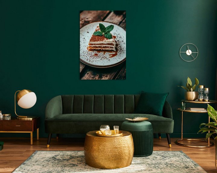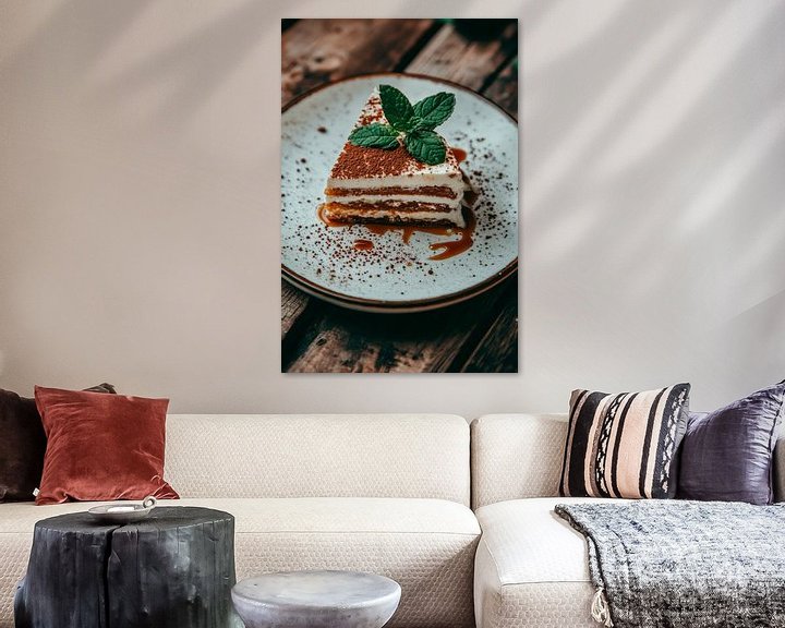 • Erhältlich mit oder ohne Passepartout für eine stilvolle Präsentation von Süßes Tiramisu mit Minze dekoriert Kunstwerken.