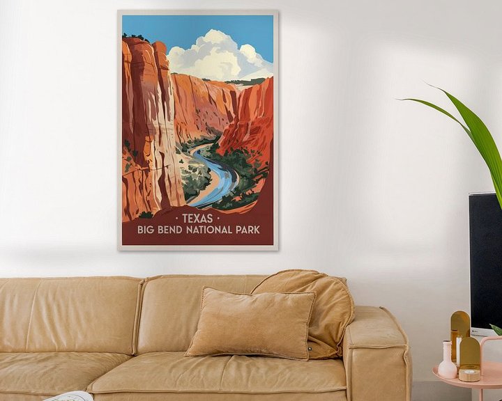 Majestätische Felsformationen erheben sich stolz über einem sanft gewundenen Fluss, während die Wolken sanft über den Himmel ziehen. Die warmen Rottöne des Terrains strahlen Ruhe und Abenteuerlust aus und laden dazu ein, die Natur zu erkunden. Perfekt für ein Wohnzimmer, bringt dieses Kunstwerk eine streichelnde Verbindung zur Natur in jeden Raum.
