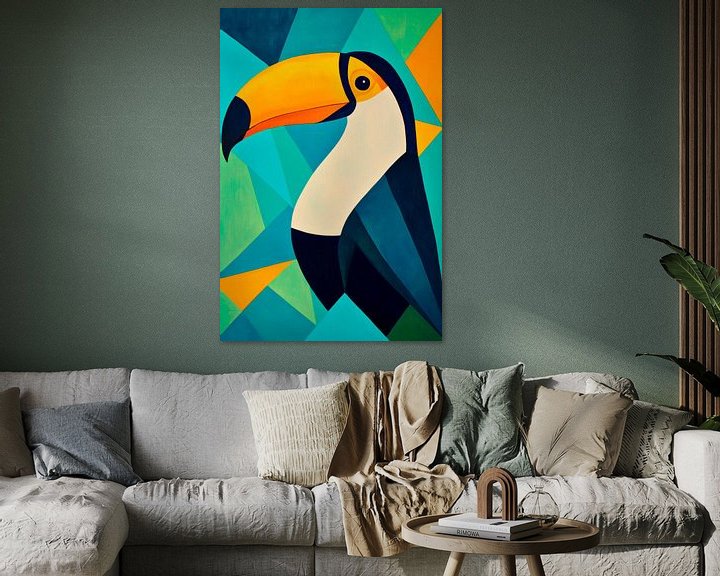 Erhältlich mit oder ohne Passepartout für eine stilvolle Präsentation von Tukanporträt in modernen Farben und Formen Kunstwerken.