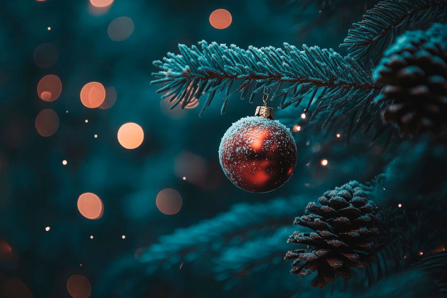 Mit warmen Lichtern und einer festlichen Weihnachtskugel auf einer verschneiten Tanne versprüht diese charmante Komposition eine einladende, besinnliche Atmosphäre. Die sanfte Farbpalette und die glitzernden Elemente schaffen ein Gefühl von Gemütlichkeit und Freude. Ideal für das Wohnzimmer, um die Liebe und den Zauber der Feiertage zu teilen.