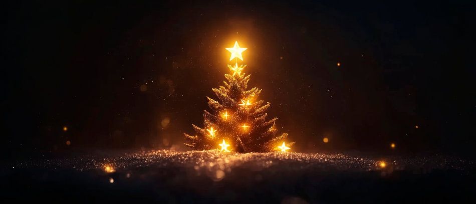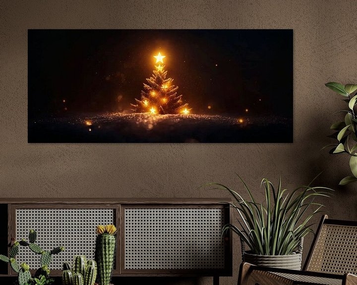 Inmitten eines funkelnden, nächtlichen Szenarios strahlt ein Weihnachtsbaum mit leuchtenden Sternen und warmen Lichtern. Die sanfte Atmosphäre bringt eine besinnliche Stimmung und zaubert Gemütlichkeit. Ideal für das Wohnzimmer, um Familie und Freunde während der festlichen Zeit zusammenzubringen und unvergessliche Momente zu schaffen.