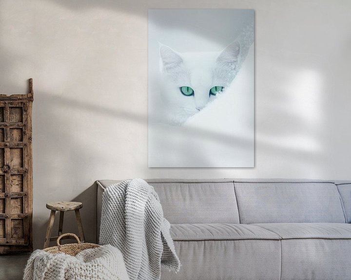 Gerahmte Poster mit Weiße Katze Kunstdruck