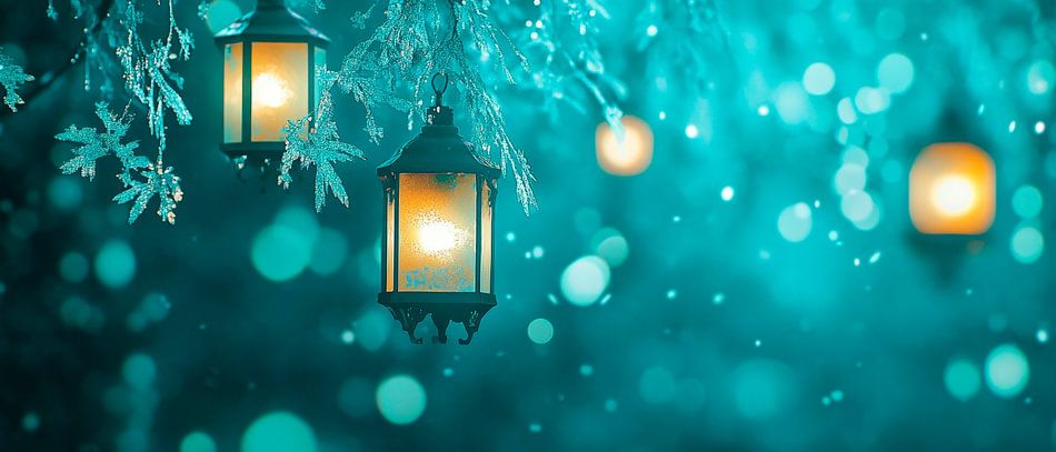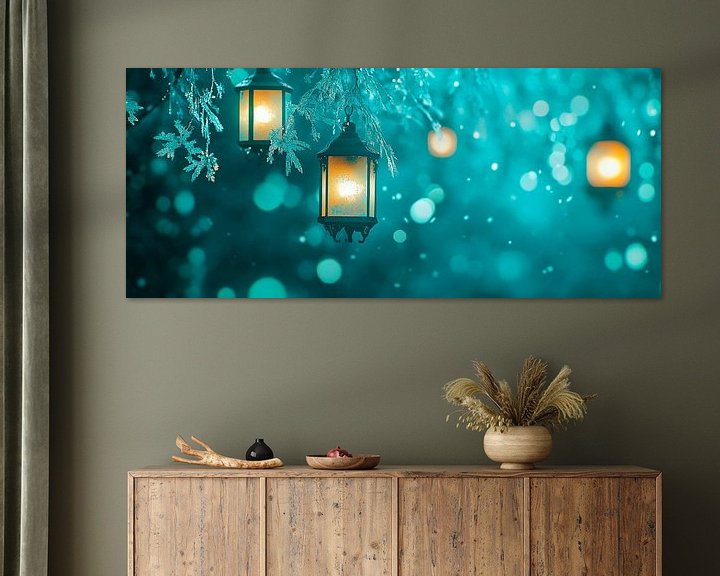 Sanfte Lichter tanzen in der winterlichen Dämmerung, während Schneeflocken leise herabfallen. Der bezaubernde Kontrast zwischen dem warmen Licht der Laternen und dem kühlen, eisigen Hintergrund schafft eine magische Atmosphäre. Perfekt für das Wohnzimmer, lädt dieses Bild dazu ein, gemütliche Abende mit Freunden und Familie zu verbringen.