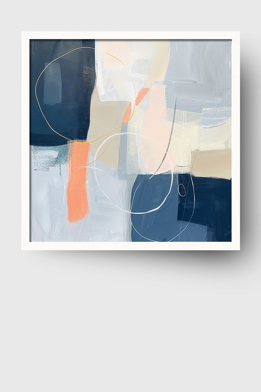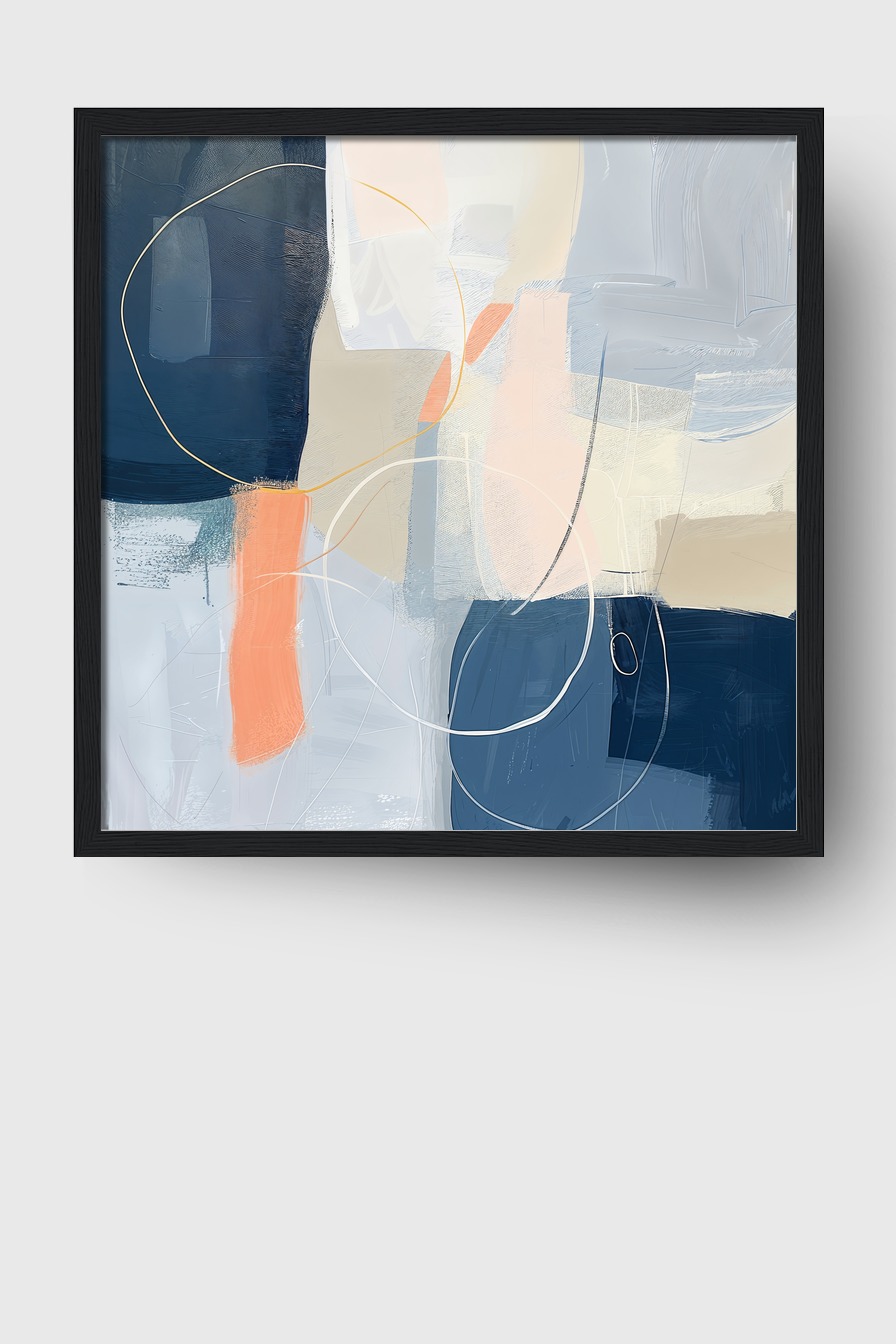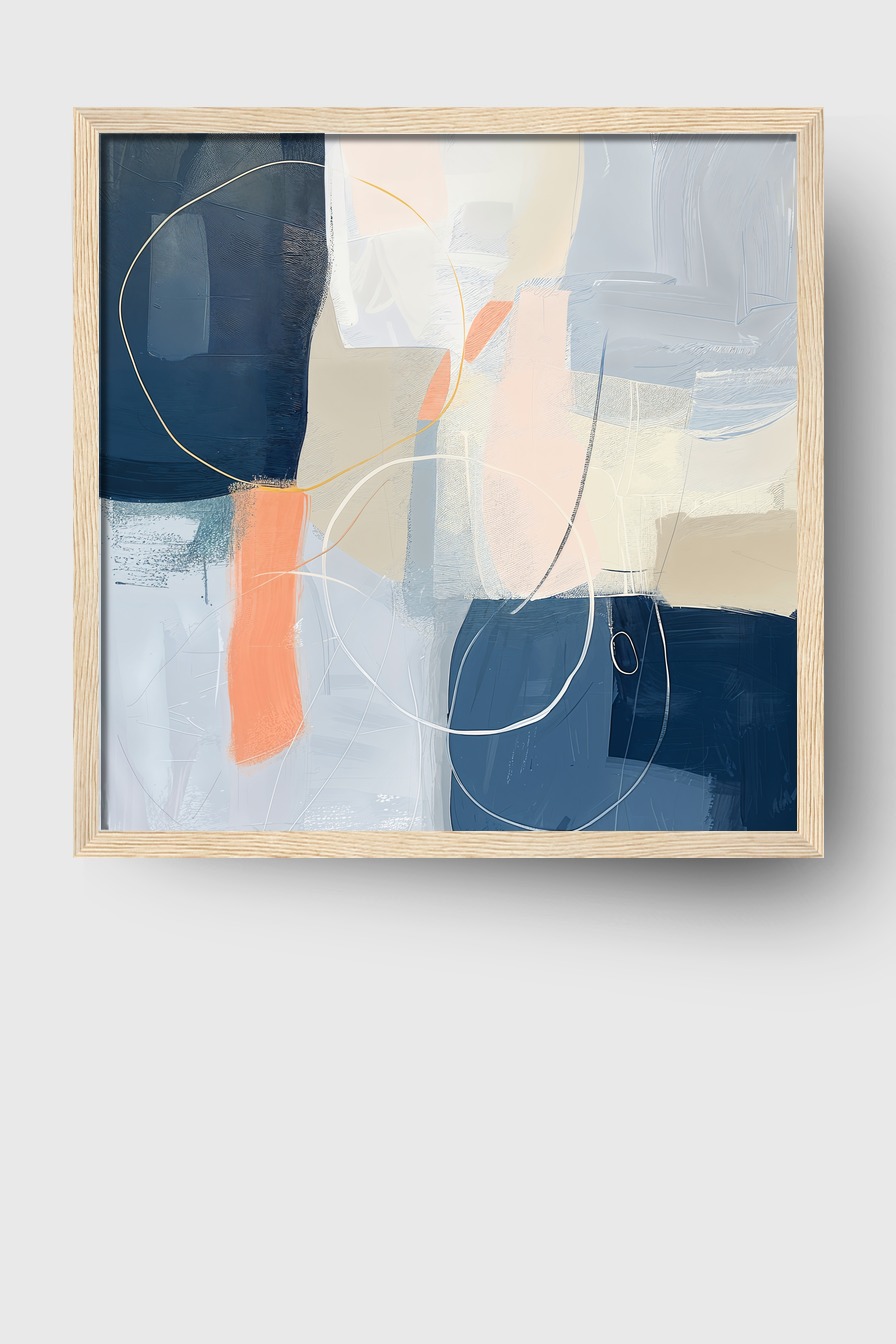 Im Raum entfaltet die Komposition eine beruhigende Wirkung, die zugleich durch die spielerischen Linien Bewegung erzeugt. Die Kombination aus Blau und Beige lässt sich leicht mit unterschiedlichen Einrichtungsstilen verbinden. Das Bild setzt stilvolle Akzente ohne aufdringlich zu wirken.