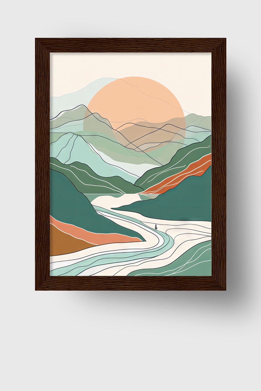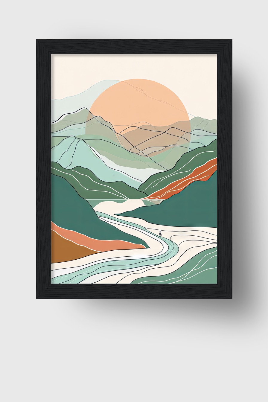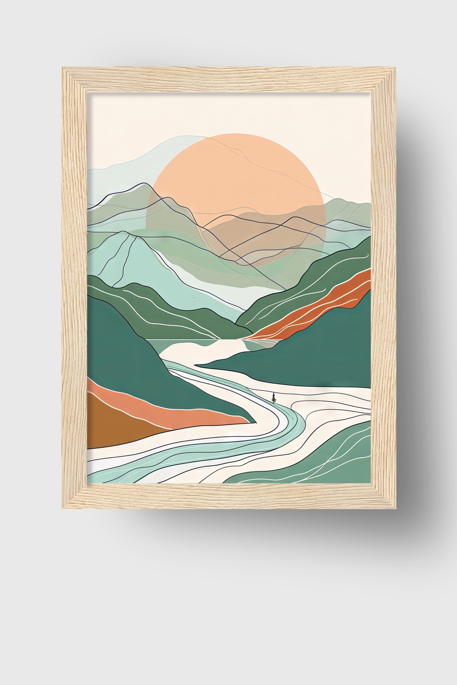 Das Motiv wirkt im Raum ruhig und geordnet. Die sanften Farbflächen schaffen eine gedeckte Atmosphäre.