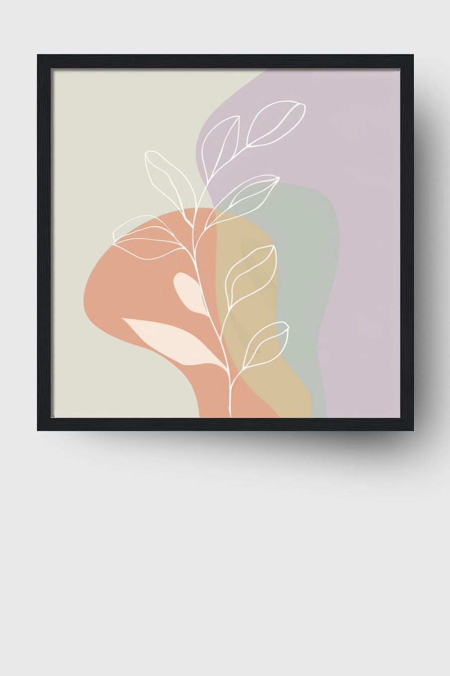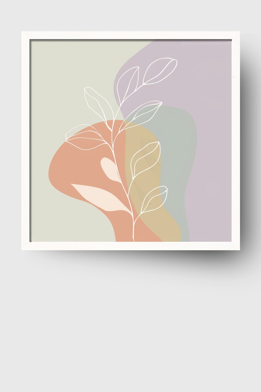 Das Motiv wirkt an der Wand leicht und luftig, die weißen Linien setzen lebendige Akzente zwischen sanften Farbflächen und geben dem Raum eine zeitlose Eleganz.