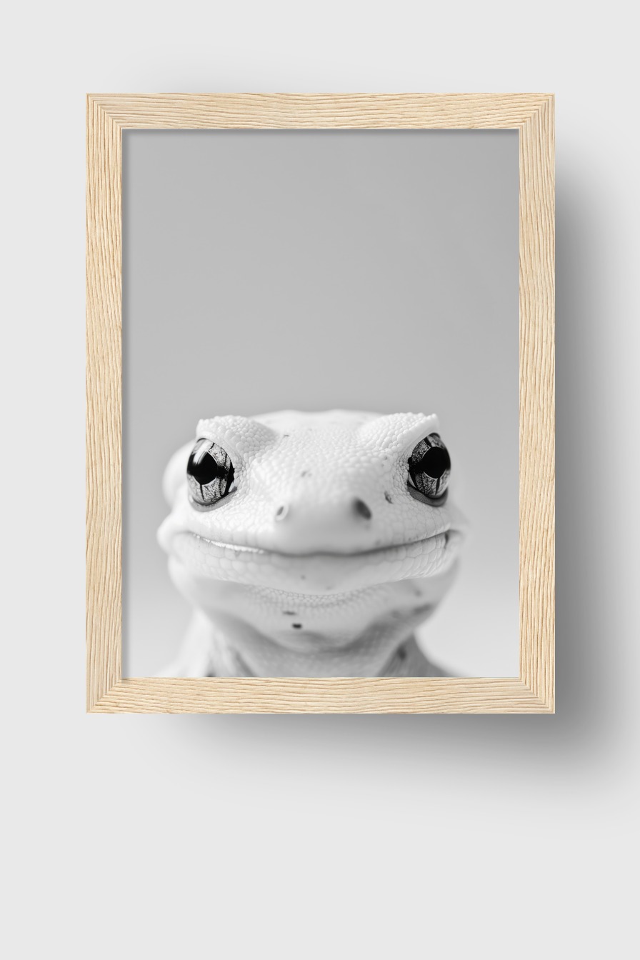 Im Raum wirkt das Motiv durch seine klare, präzise Darstellung still und eindringlich. Es setzt einen markanten Akzent und zieht die Aufmerksamkeit auf ein ungewöhnliches Tierporträt.
