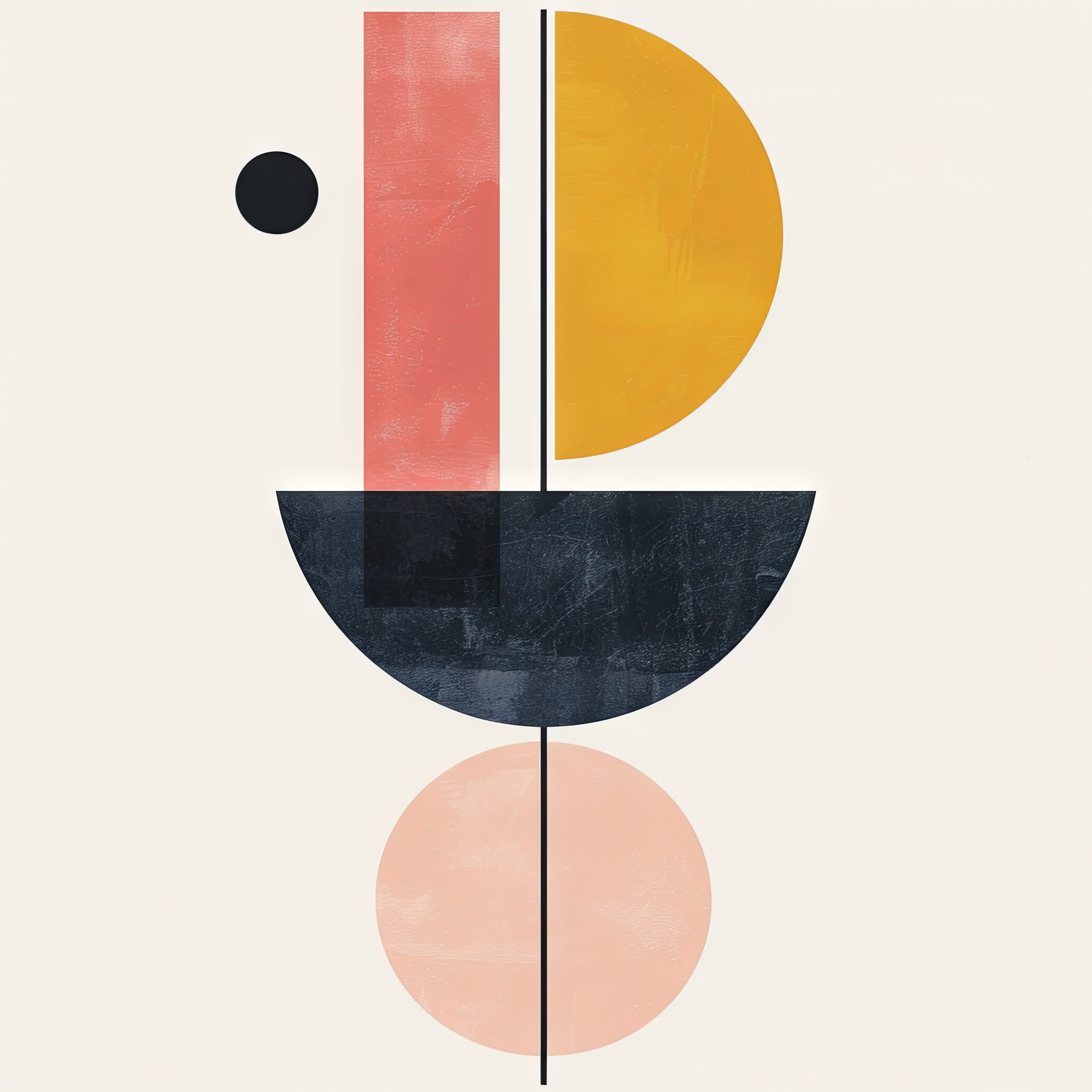 Flächen tanzen übereinander, texturierter Kontrast in ruhiger Anordnung. Das Bild zieht in die Reduktion der Formen, strahlt schlichte Eleganz aus.