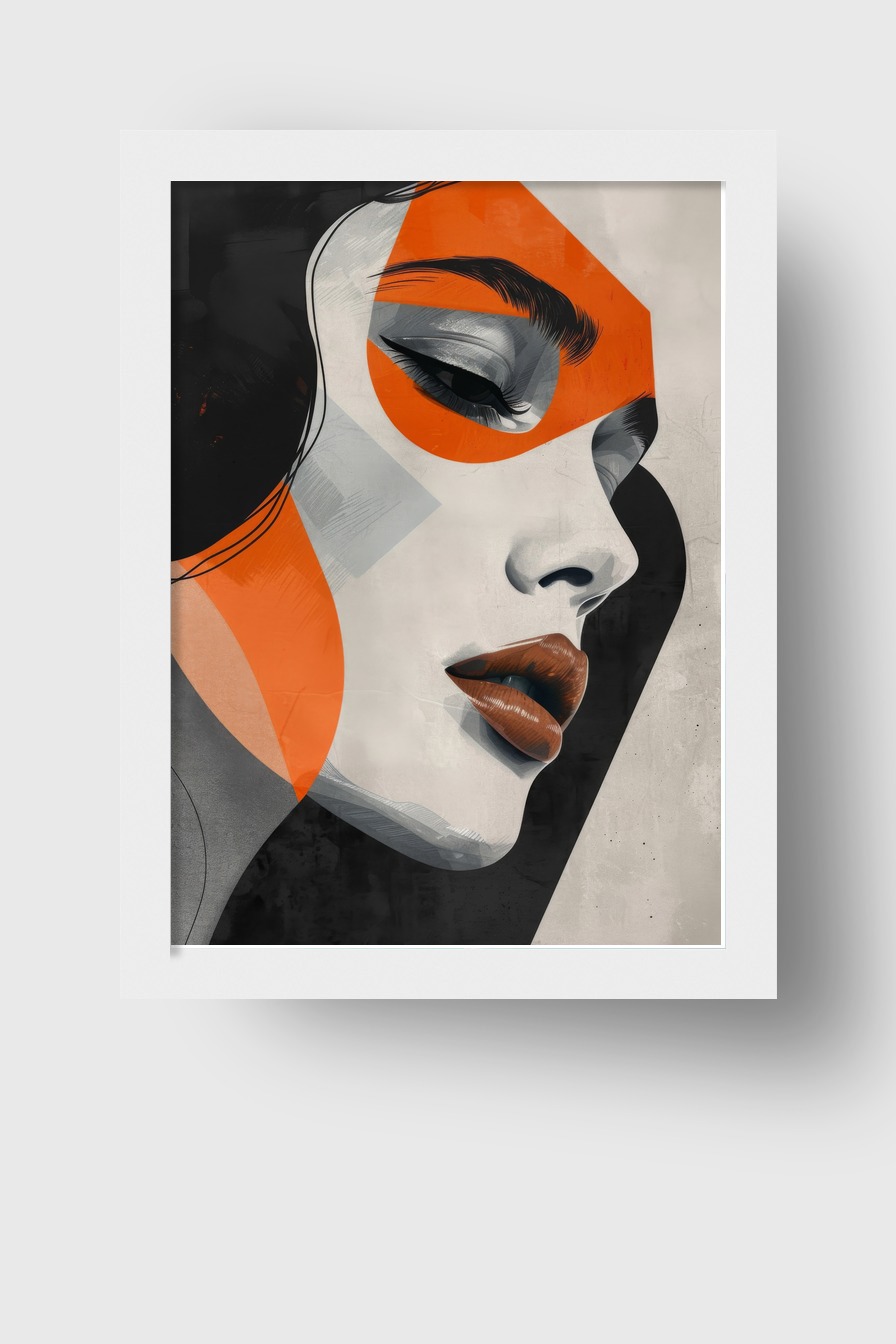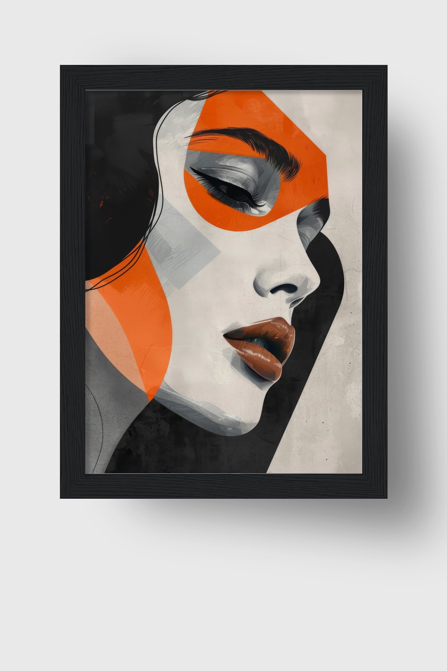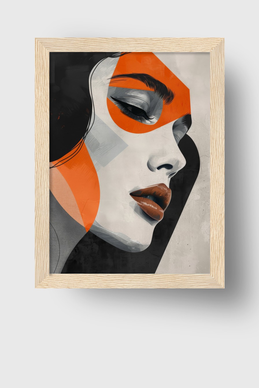 Frau Gesicht Orange Flächen Gerahmt Frau Gesicht Orange Flächen Gerahmt