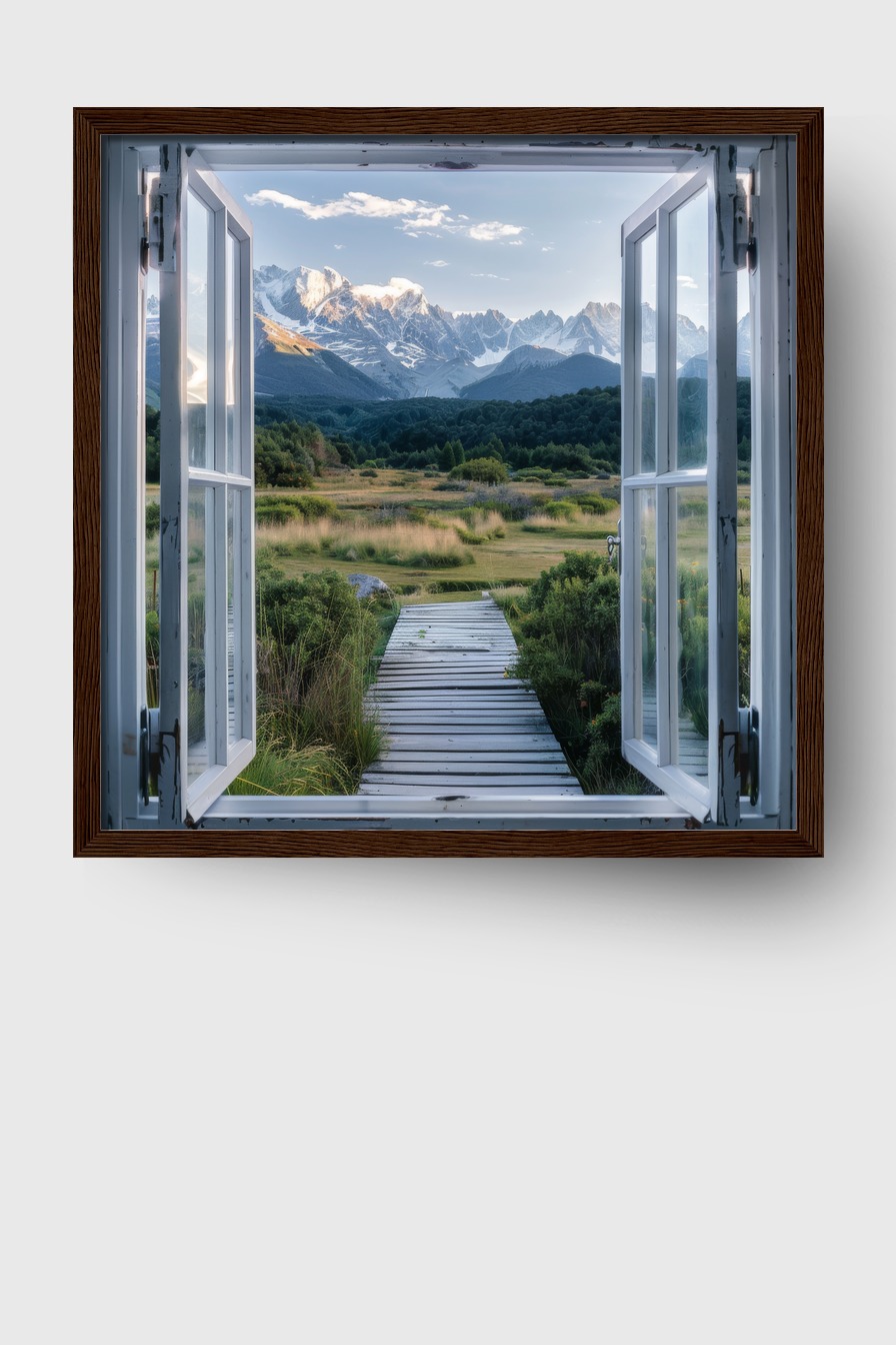 Gebirgspanorama Fensterblick Gerahmt Gebirgspanorama Fensterblick Gerahmt