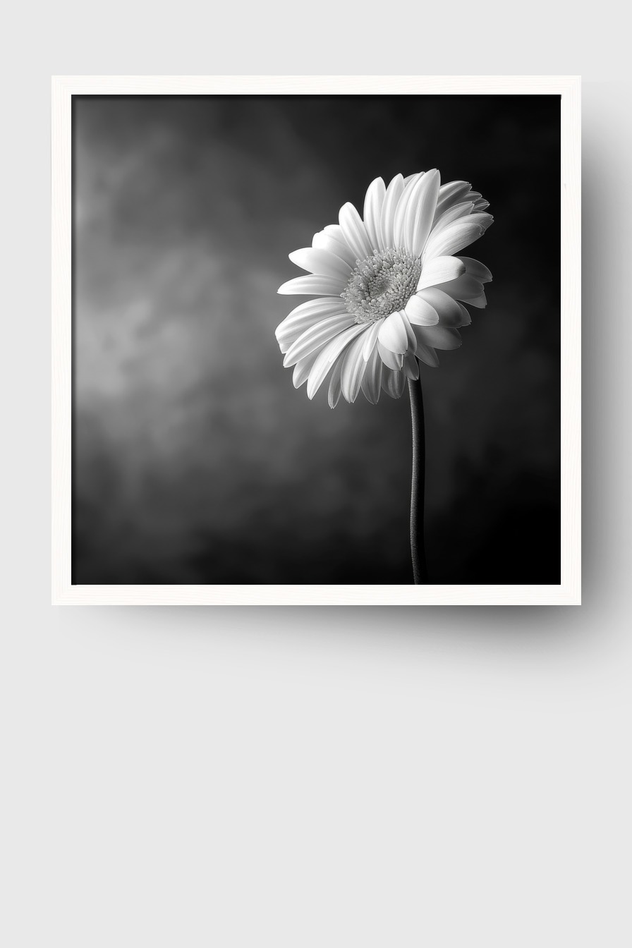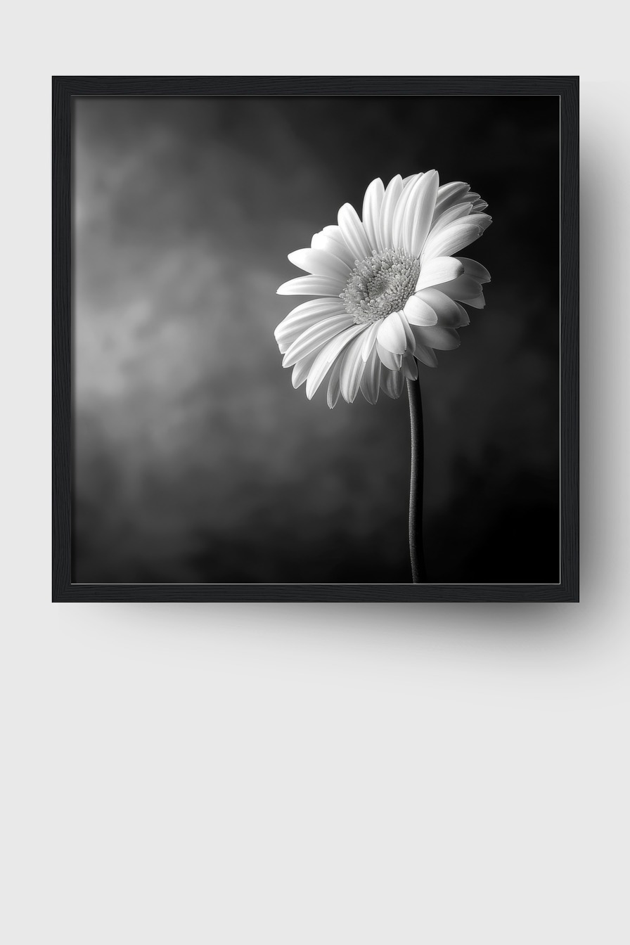 Gerbera Stiel Schwarz-Weiß Gerahmt