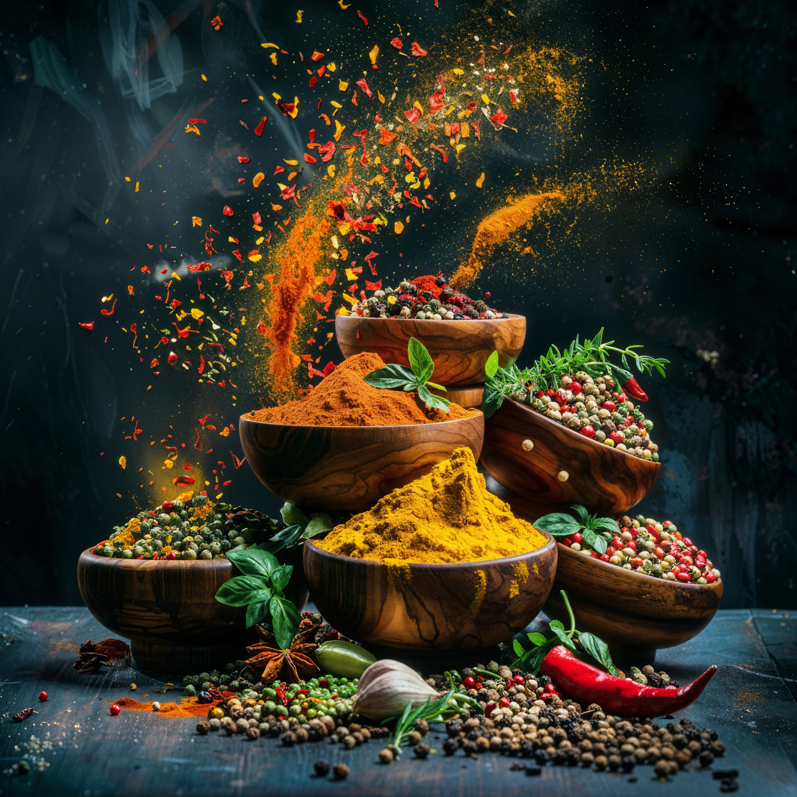 Im Raum wirken die Gewürze mit ihren intensiven Farben und dem natürlichen Arrangement warm und lebendig wie ein stiller Duftmoment.