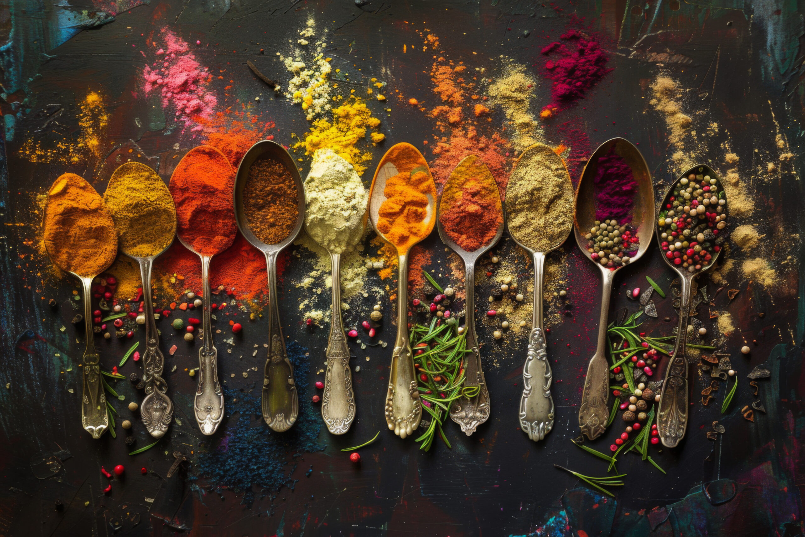 Die Löffel mit Gewürzen bringen einen farbigen und strukturierten Akzent in den Raum und laden zum genauen Hinsehen ein.