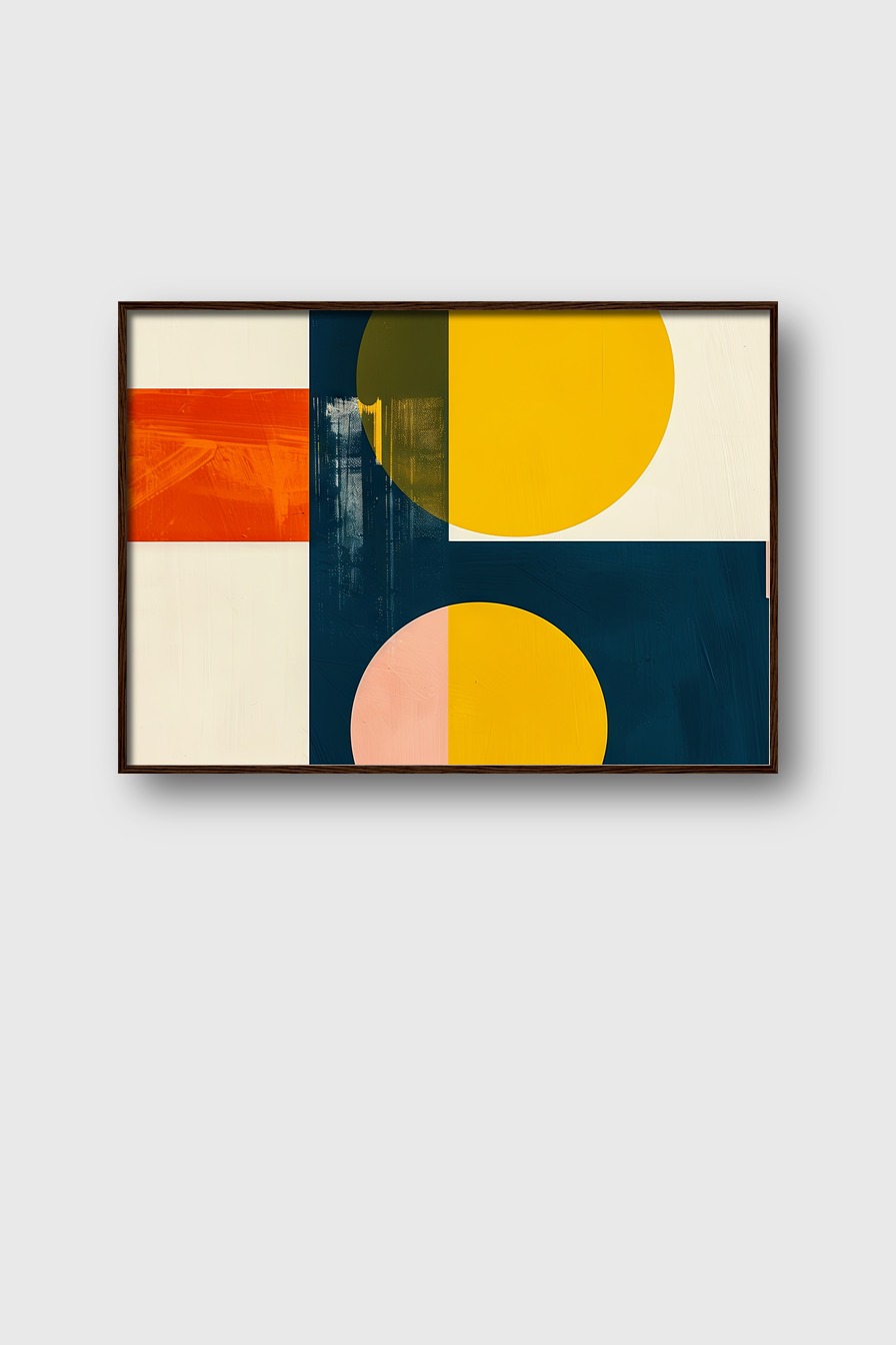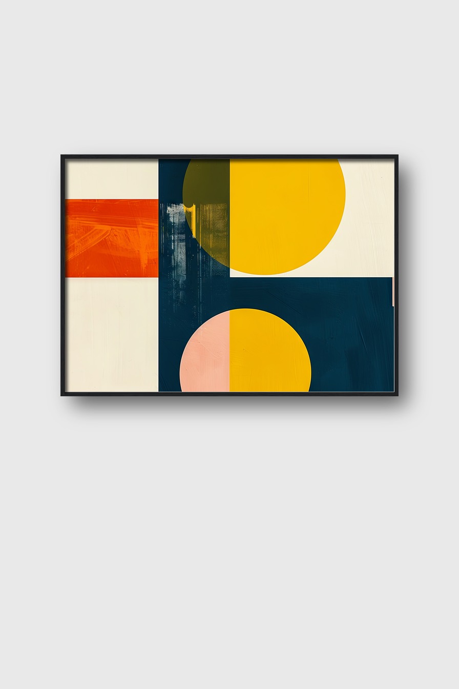 Im Raum zieht das Bild mit seinen satten Farben und der reduzierten Geometrie den Blick auf sich, ohne zu dominieren.