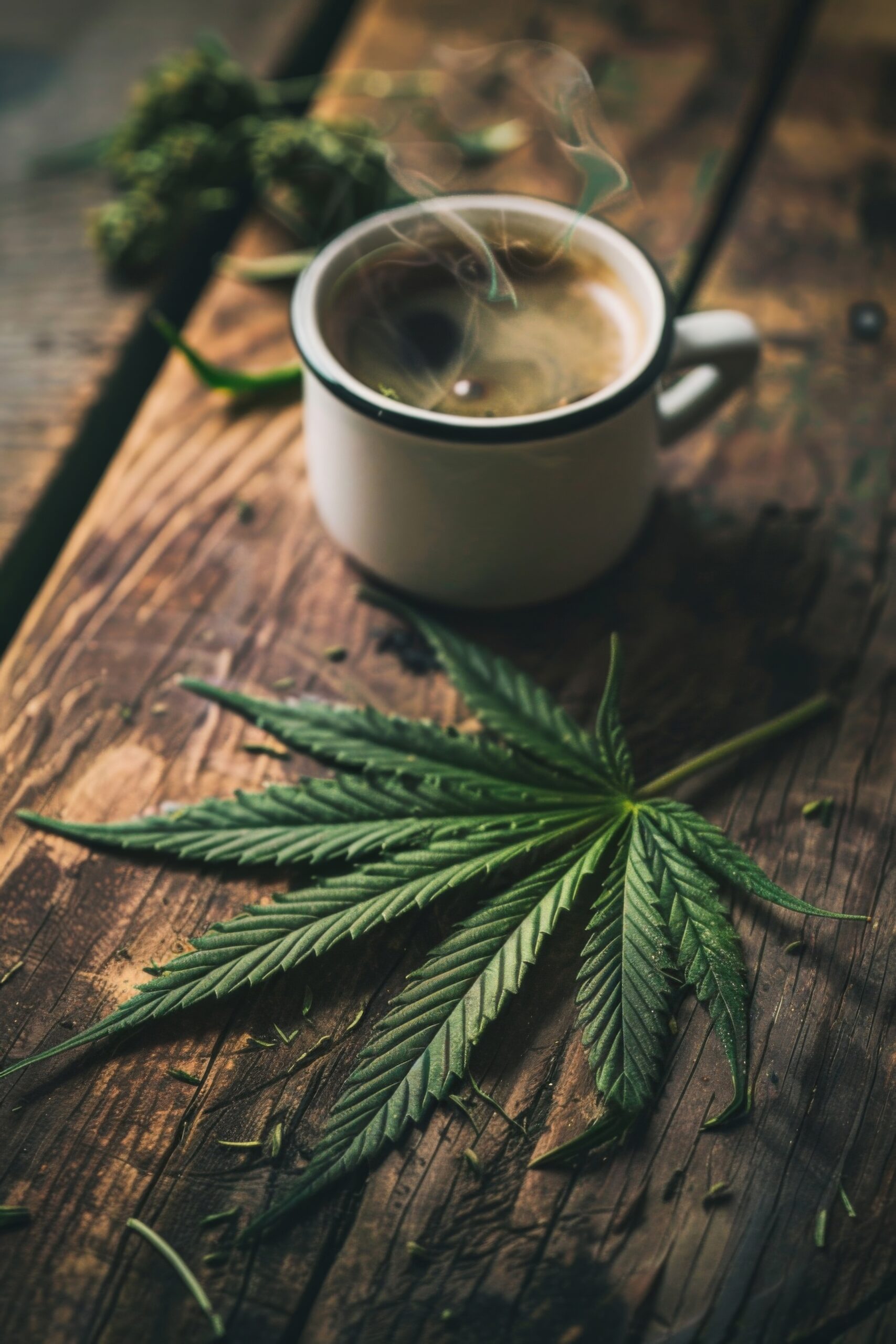 Bleibt im Raum präsent durch das warme, dunkle Holz und die leichten Dampfwolken. Das Motiv wirkt zugleich beruhigend und anregend, ein Moment eingefangen zwischen Natürlichkeit und Genuss.