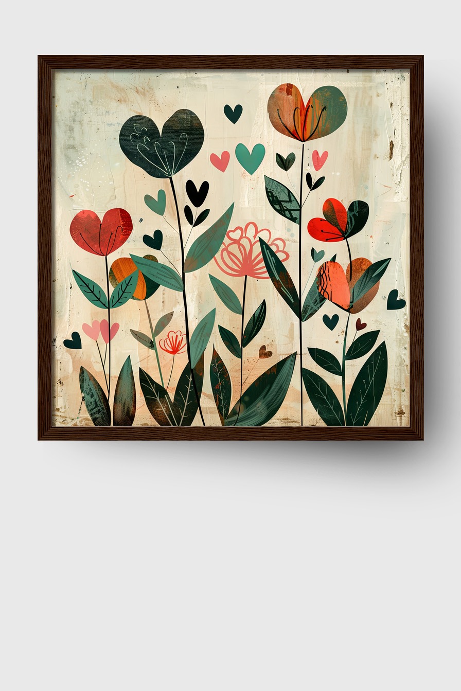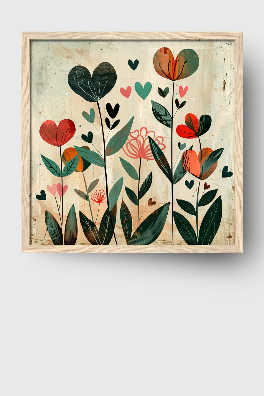 Herzblumen Bunt Gerahmt