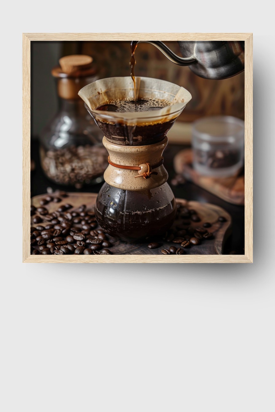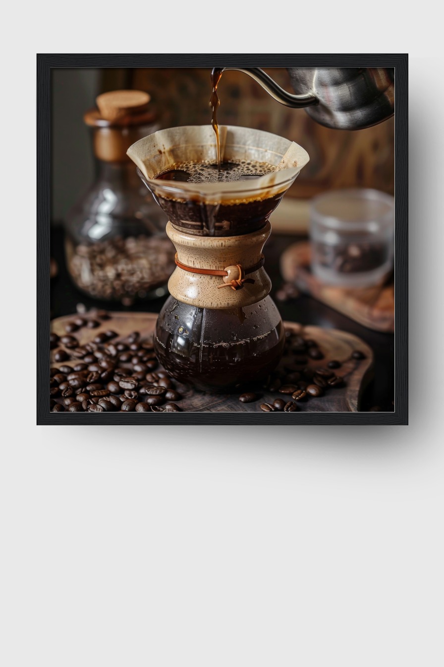 Bringt die Tiefe einer Kaffeepause in den Raum. Dunkle Töne schaffen einen warmen Mittelpunkt, der sofort Konzentration und Genuss suggeriert. Passt gut in Küche oder Arbeitsbereich.