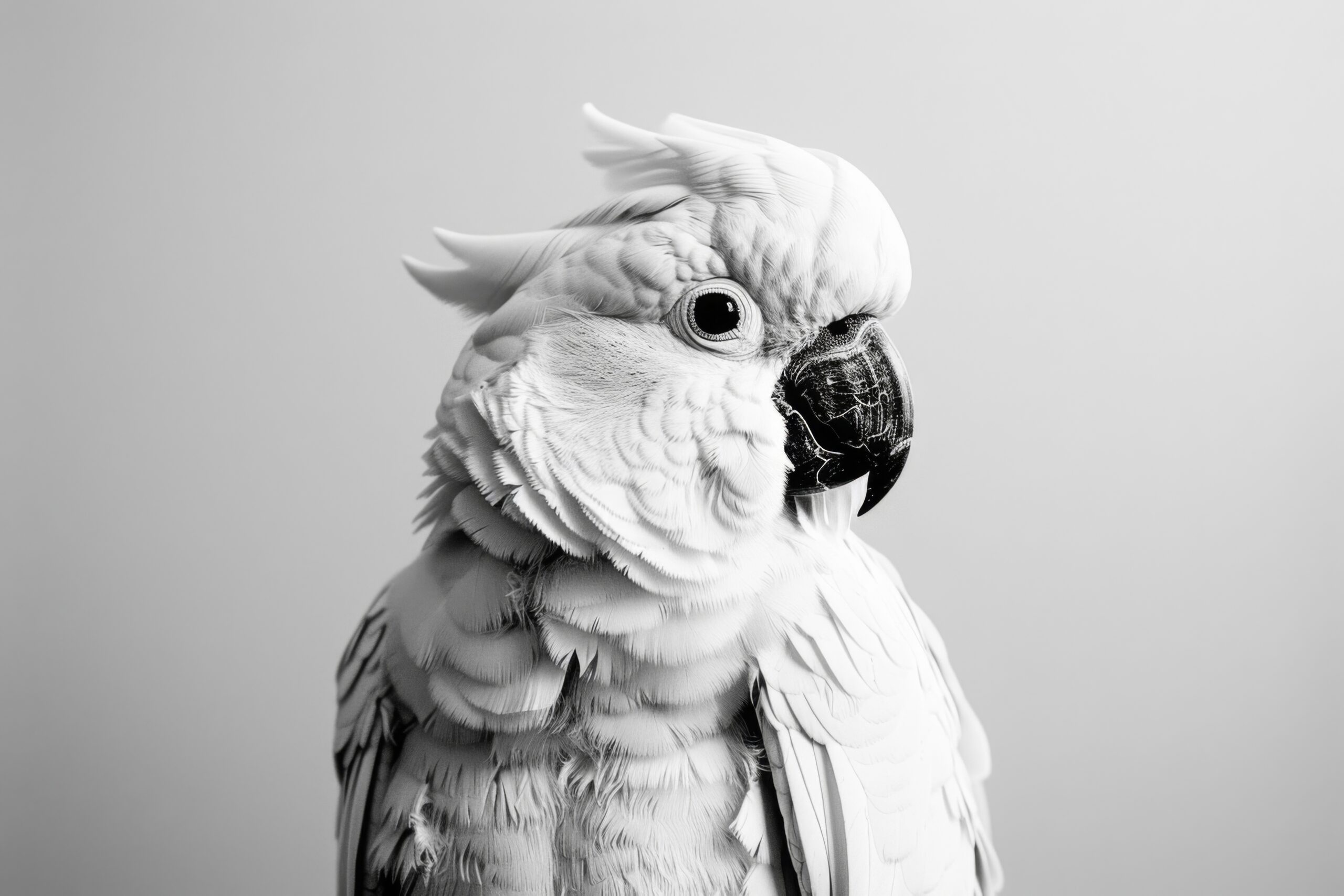Das Porträt vermittelt die ganze Präsenz des Vogels in scharfem Schwarz-Weiß mit klaren Schattierungen.