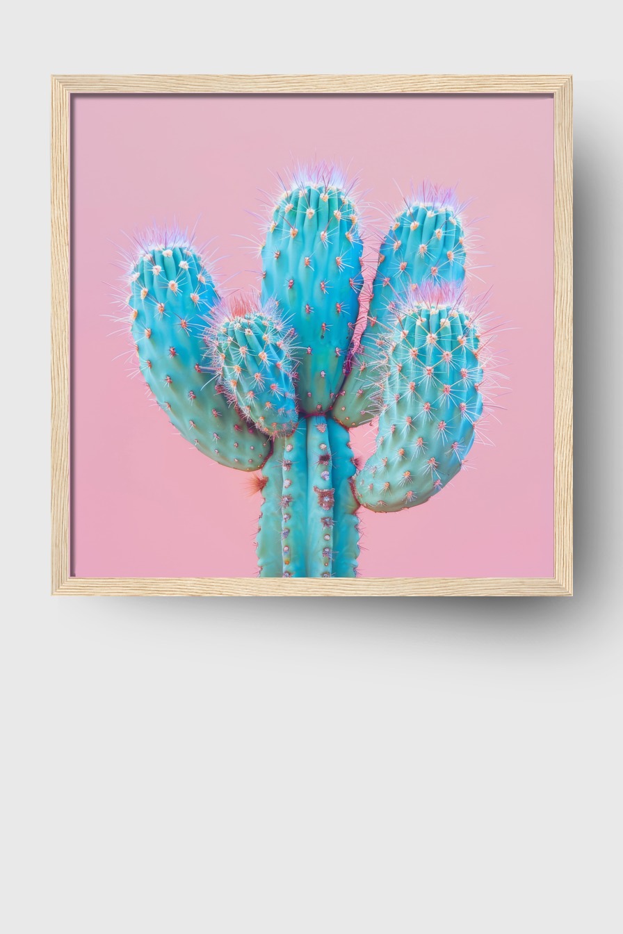 Kaktus vor Rosa Gerahmt