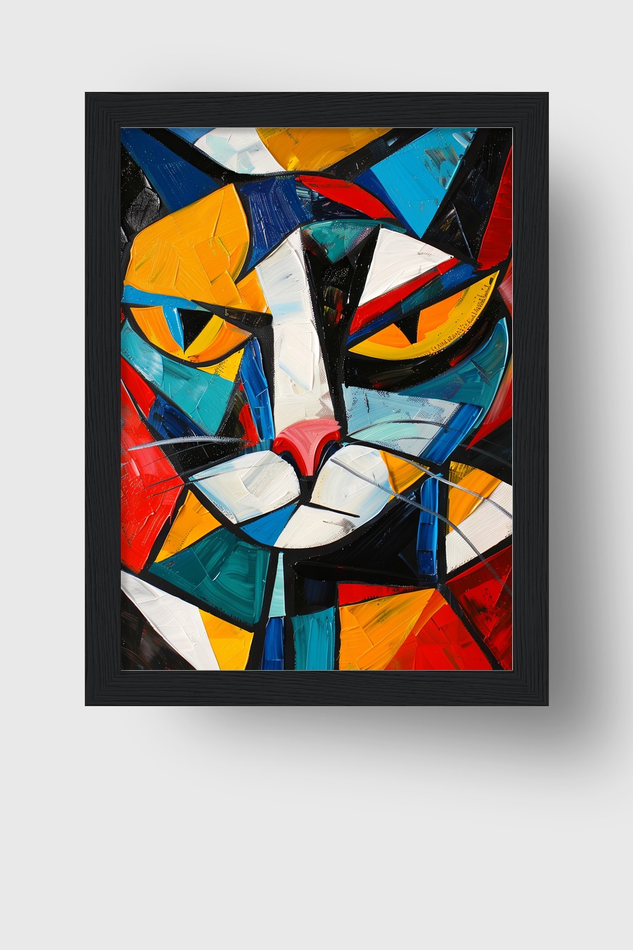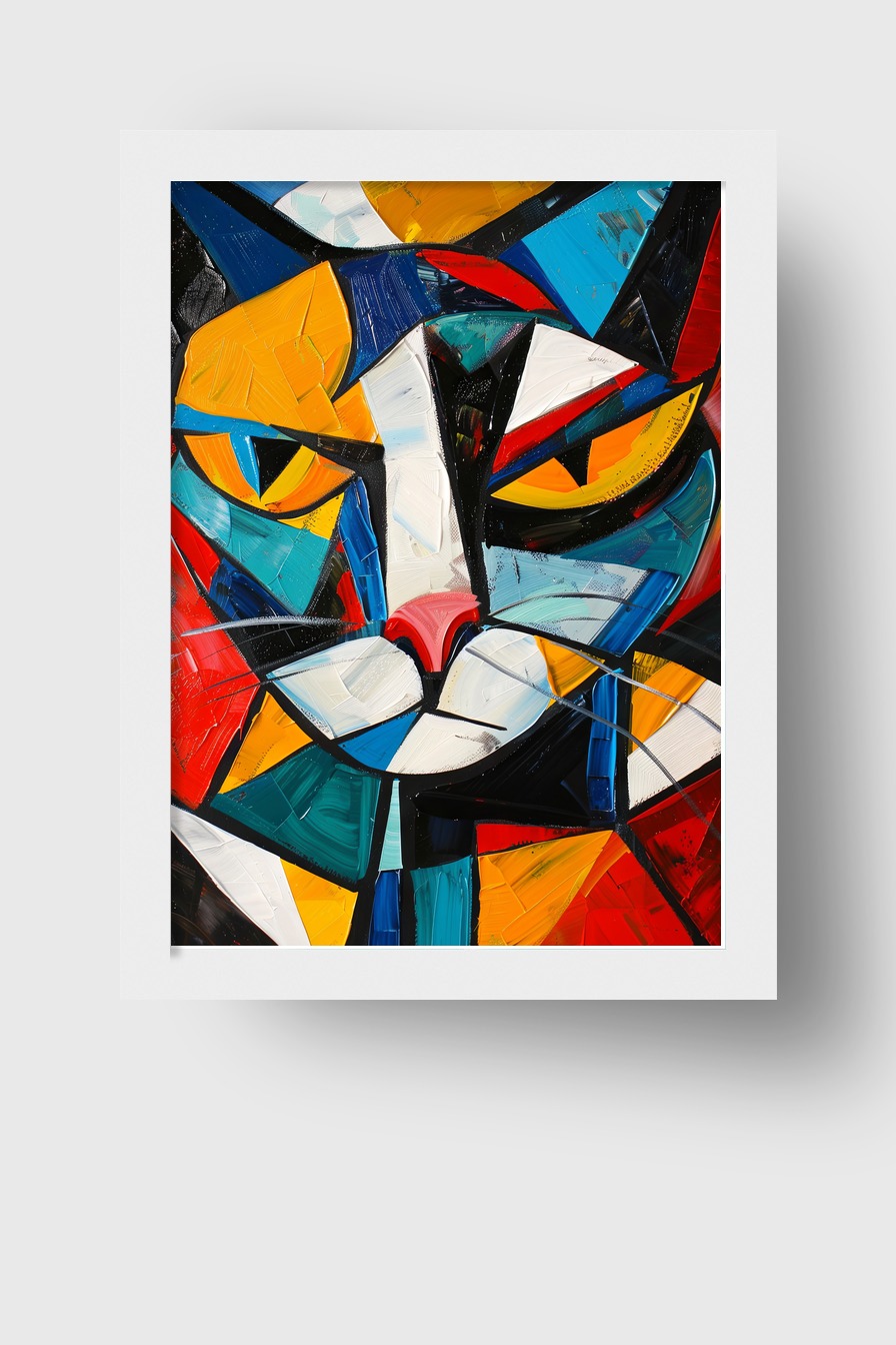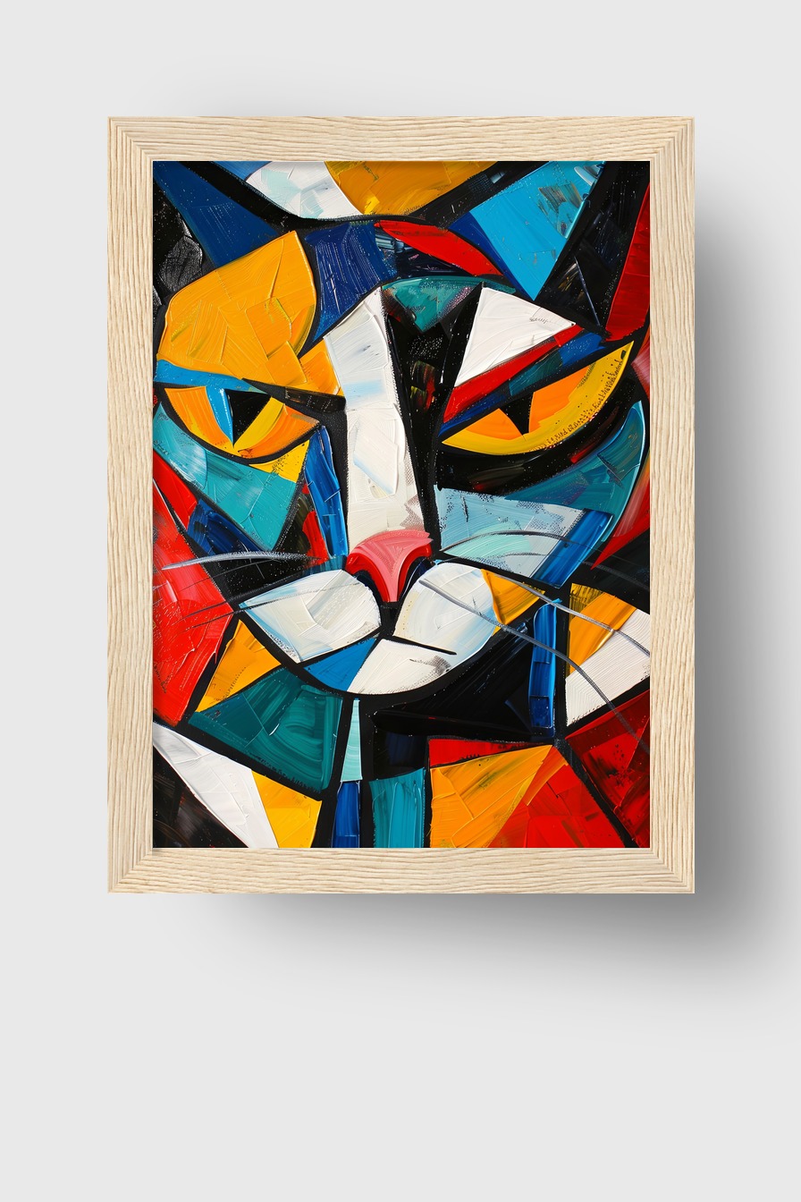 Das Bild entfaltet mit klaren, farbigen Linien und akzentuiertem Rot in der Nase eine kraftvolle Aura, die jedem Raum eine markante Stimmung verleiht.
