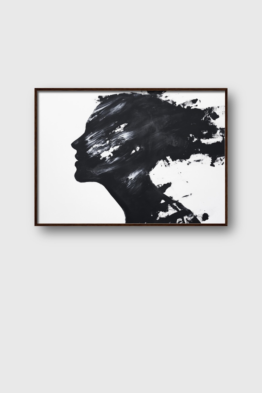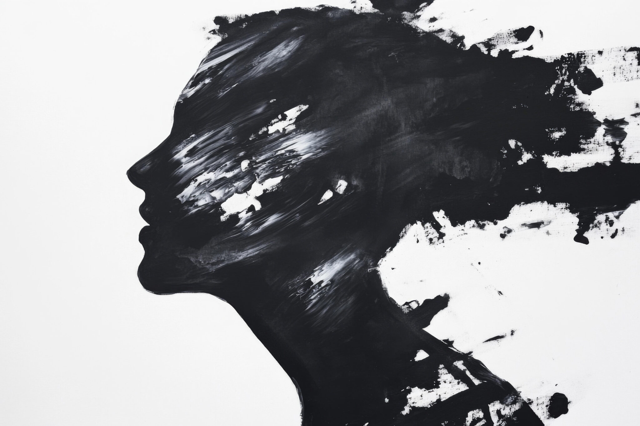 Das Bild wirkt reduziert und betont die Konturen eines Gesichts im Profil.