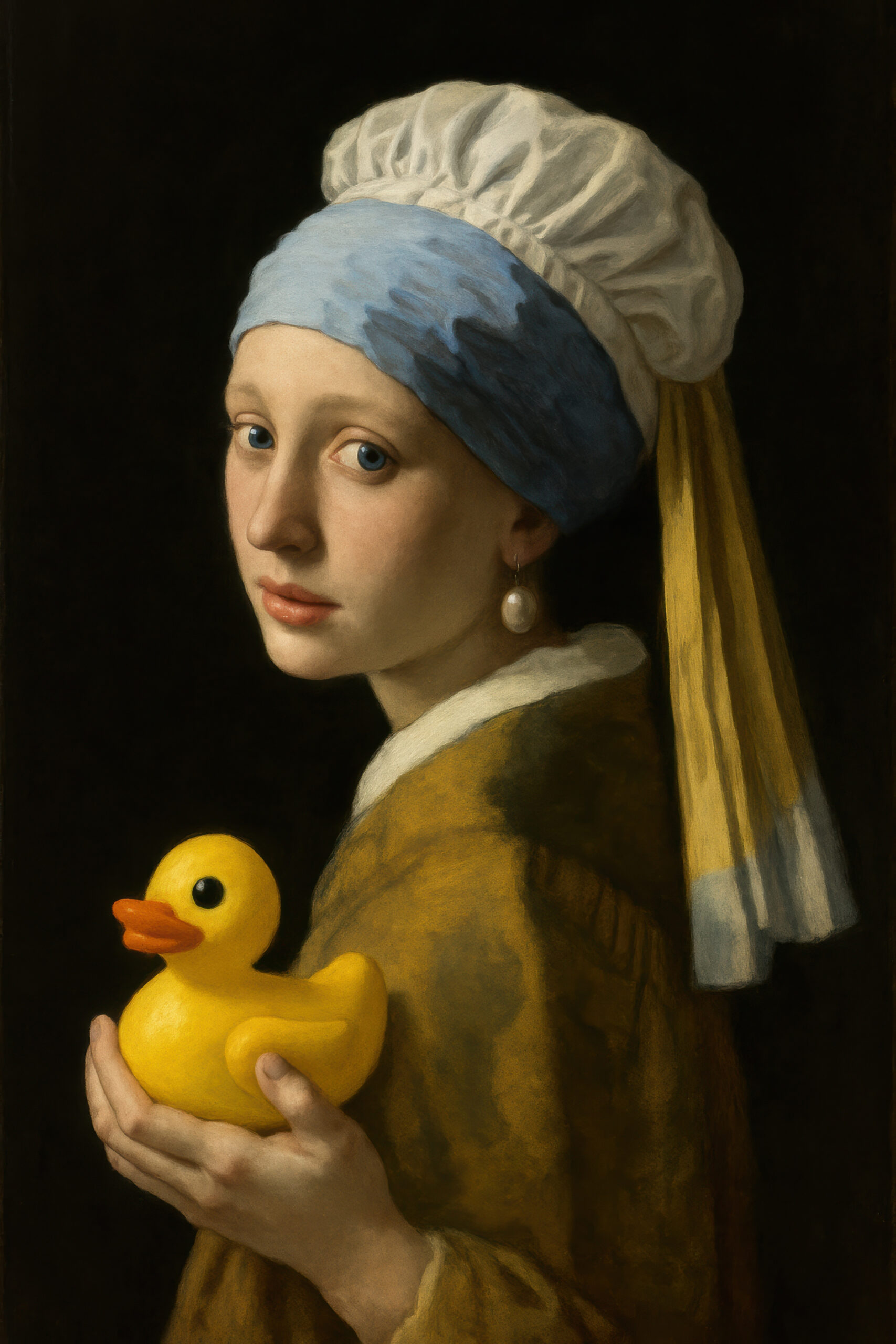 Illustration Poster Mädchen Quietscheente ruhig Porträt