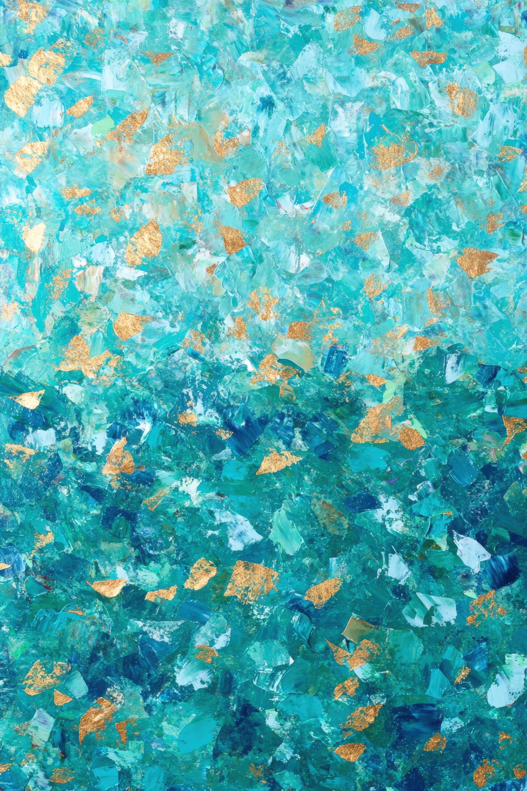 Diese abstrakte Komposition zeigt eine lebendige Mischung aus verschiedenen Blautönen mit goldenen Akzenten. Die Struktur wirkt dynamisch und bringt eine edle Farbgebung ins Bild.