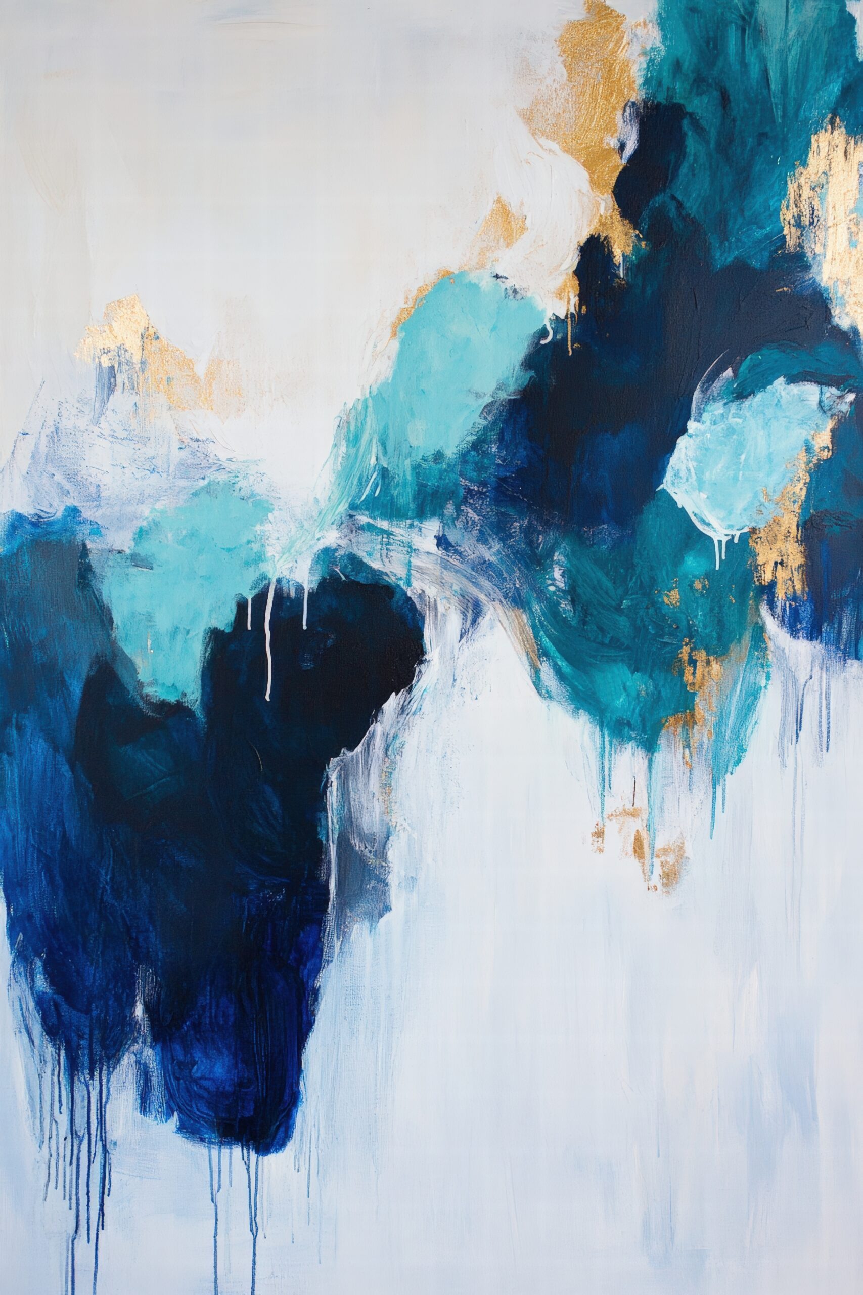 Abstrakter Kunstdruck mit blau-goldenen Farbflächen und fließenden Übergängen in moderner Komposition als Poster