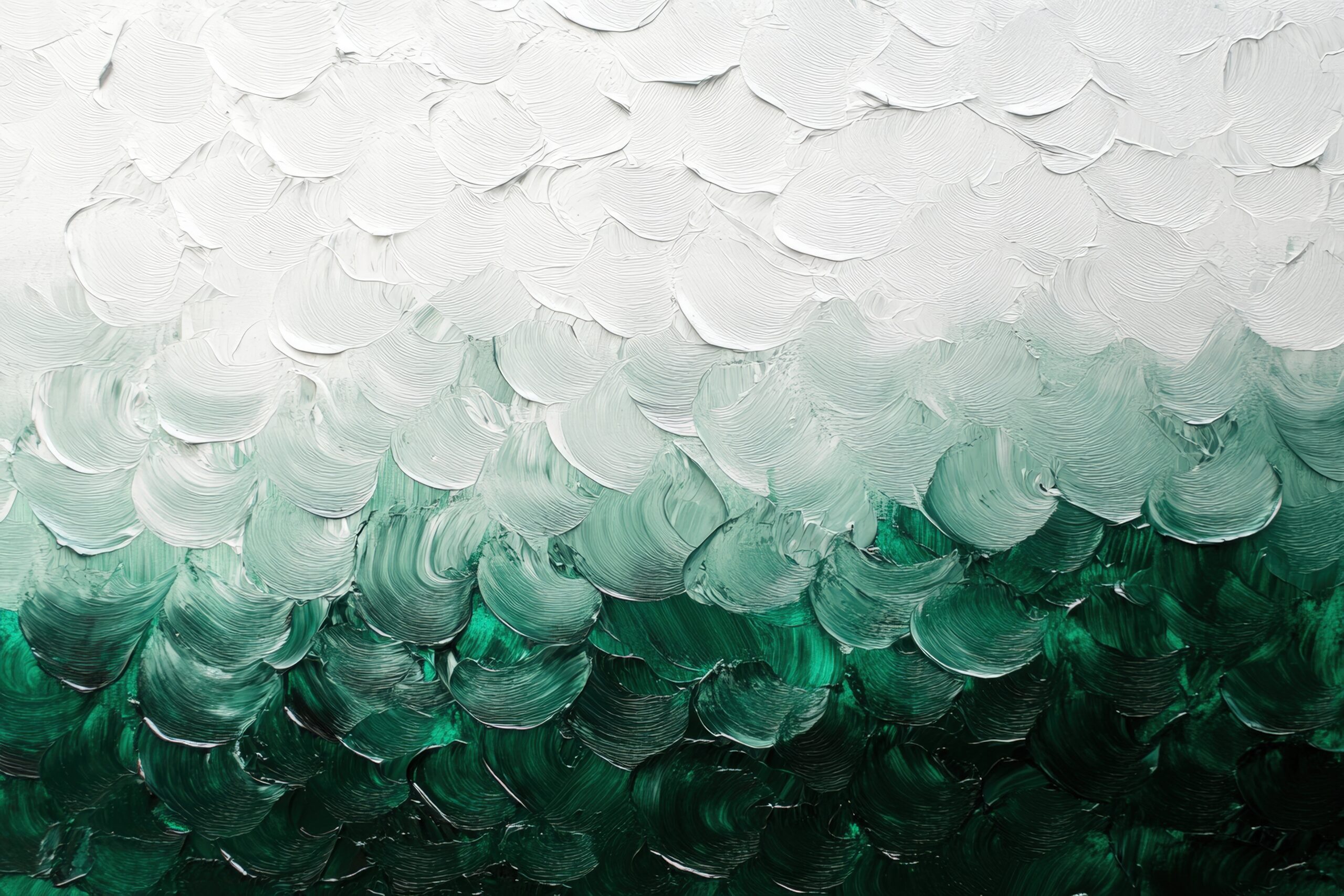 Abstrakter Kunstdruck mit grünen und weißen Farbschichten in Spachteltechnik, strukturierter Farbauftrag als Poster für moderne Räume