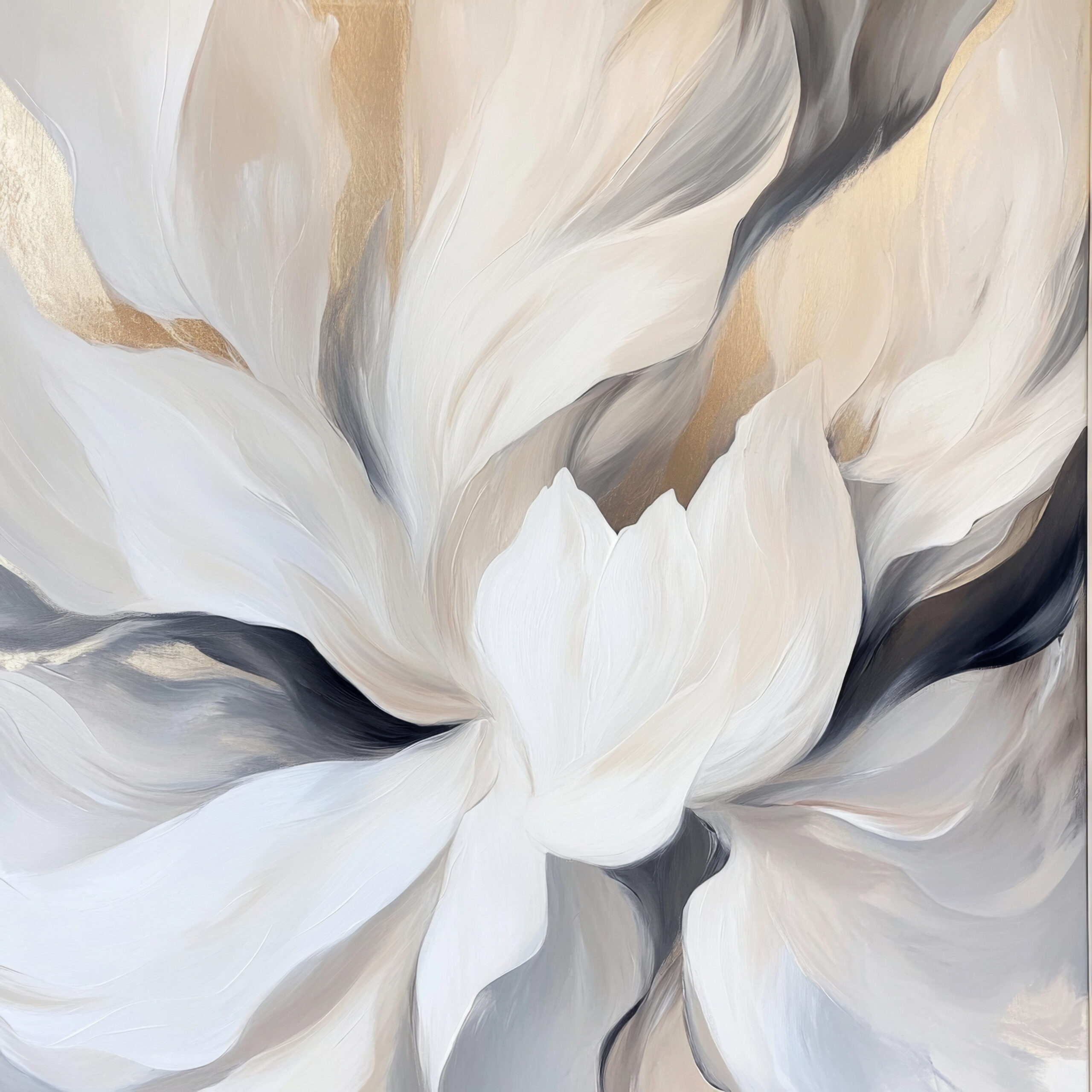 Das Motiv einer großen weißen Blüte auf Baumwoll-Polyester-Leinwand (300-350 g/m²) aufgezogen. Der FSC-zertifizierte Kiefernholzkeilrahmen sorgt für Stabilität. Inklusive Aufhängeset, rahmenfertig.