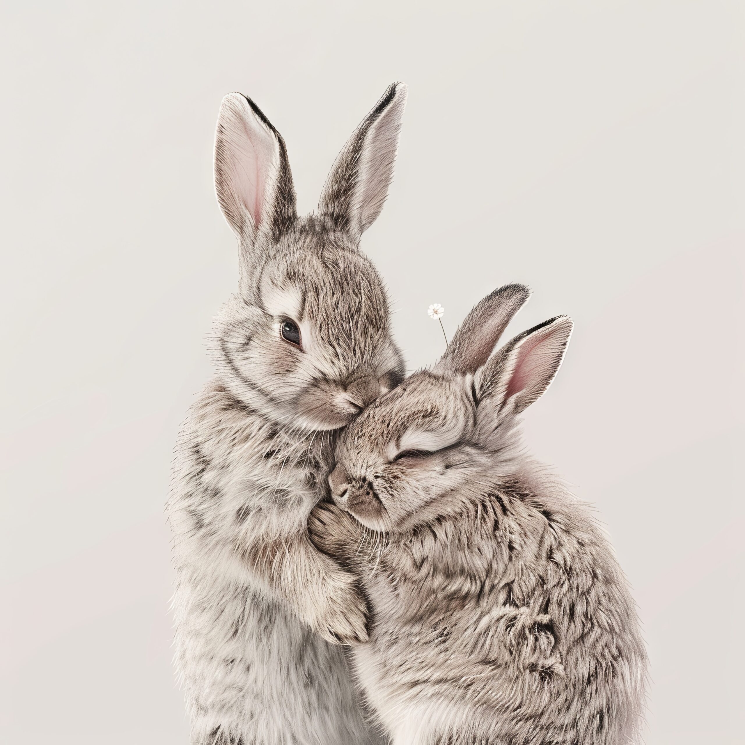Das Bild zeigt zwei Kaninchen in ruhiger, klarer Komposition zusammen.