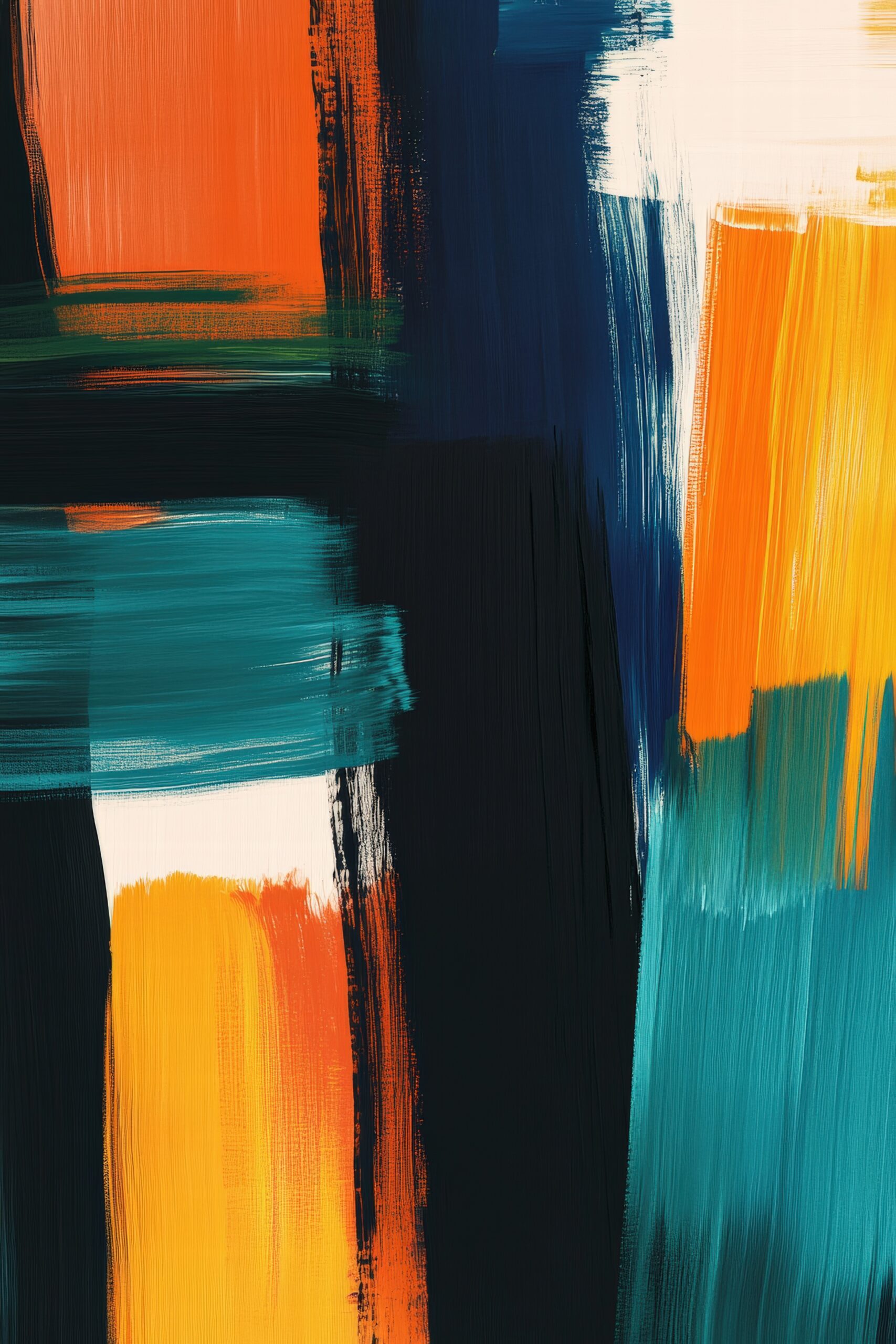 Abstrakter Kunstdruck mit kräftigen Farbblöcken in Orange, Blau und Türkis als Poster auf halbmattem Papier
