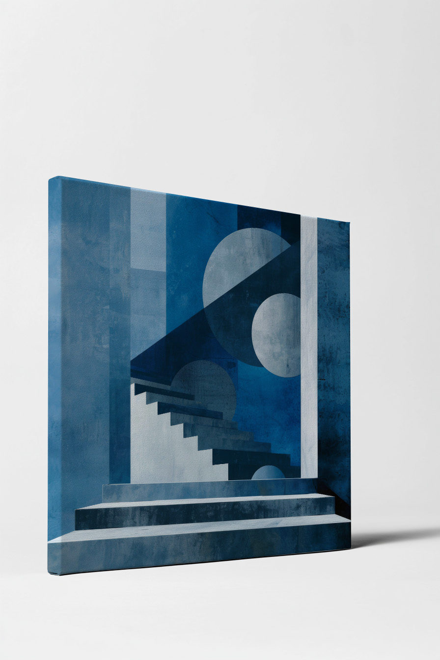 Digitale Kunst Poster Treppe minimalistisch blau weiß