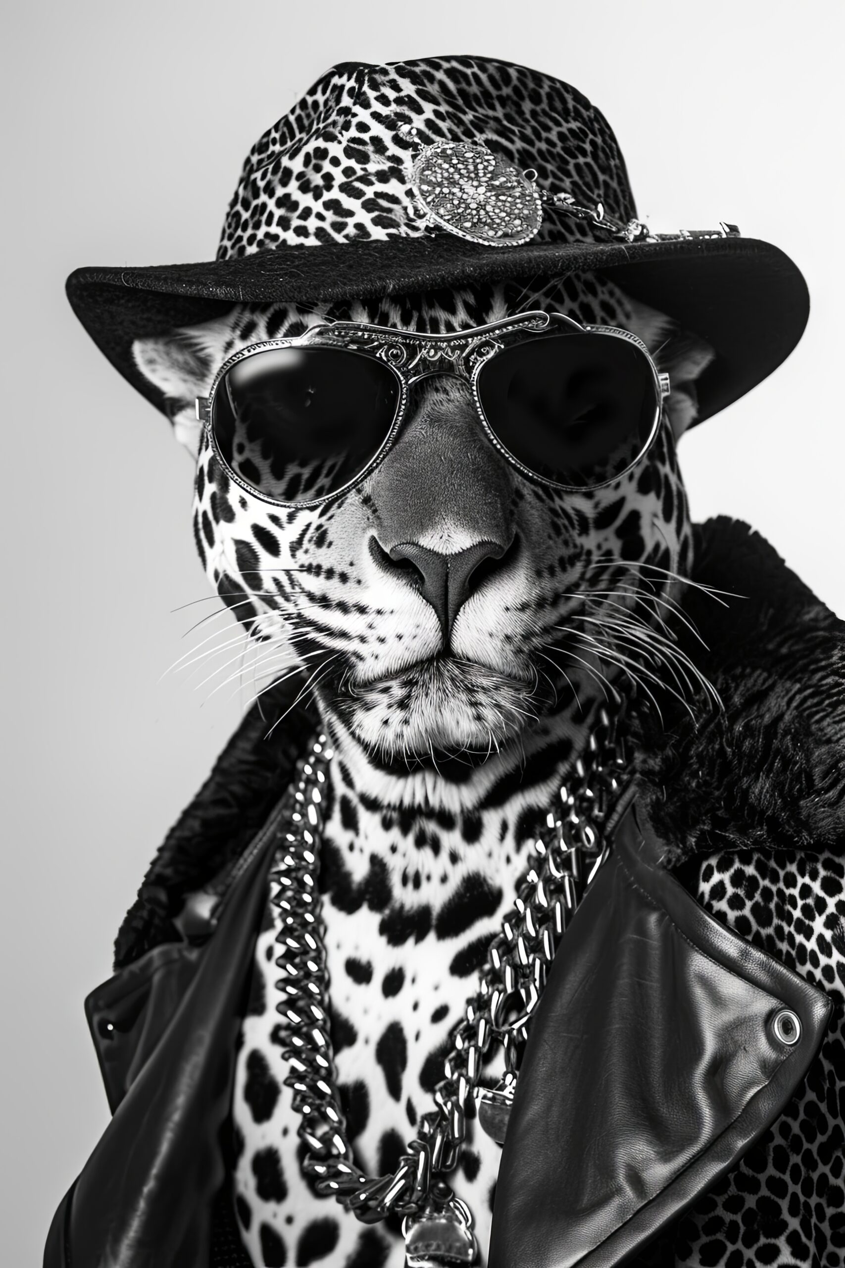 Fotografie Poster Leopard schwarz-weiß Porträt Hut Sonnenbrille