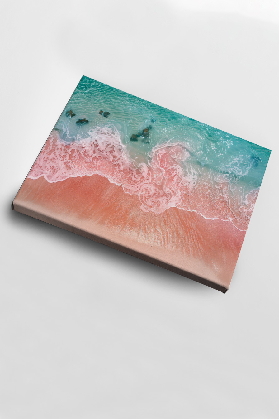 Die Kombination aus pastelligem Sand und bewegtem Wasser schafft eine friedliche, fast abstrakte Szene, die das Auge mit ihren sanften Farbverläufen fesselt.