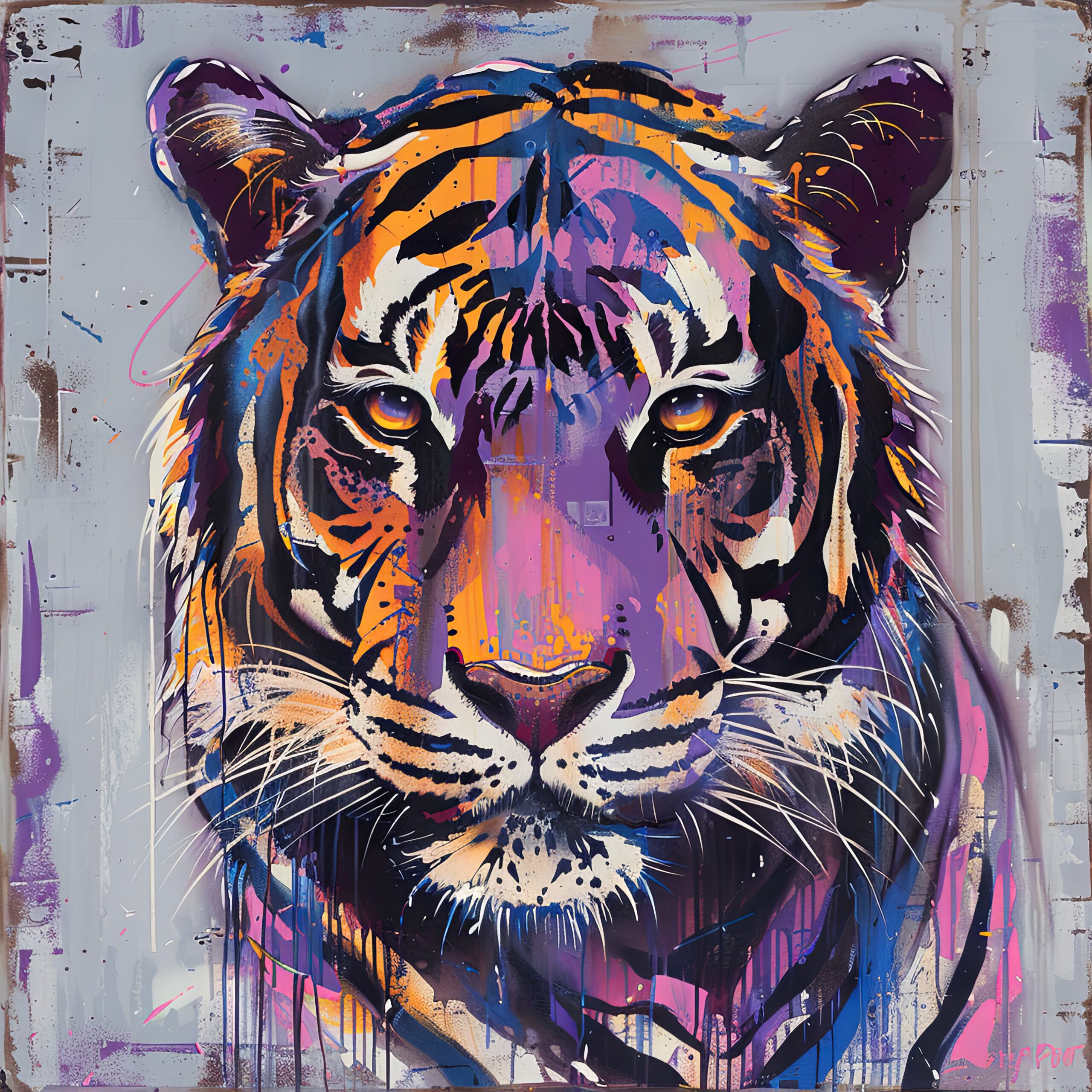 Das Tigerporträt wird auf Baumwoll-Polyester-Leinwand (300-350 g/m²) gespannt auf FSC-Kiefernholzkeilrahmen (2 cm). Fertig zum Aufhängen mit beiliegendem Set.