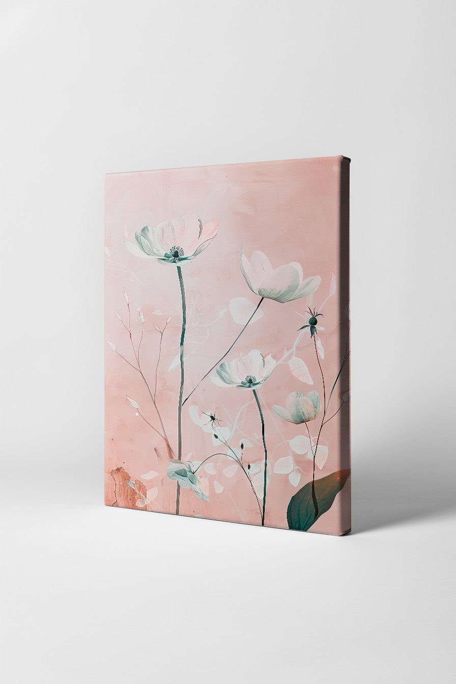 Das Bild zeigt ein filigranes Geflecht aus dünnen Stängeln und Blüten, die leicht und luftig wirken, die sanfte Farbharmonie lässt den Blick schweifen und beruhigt.