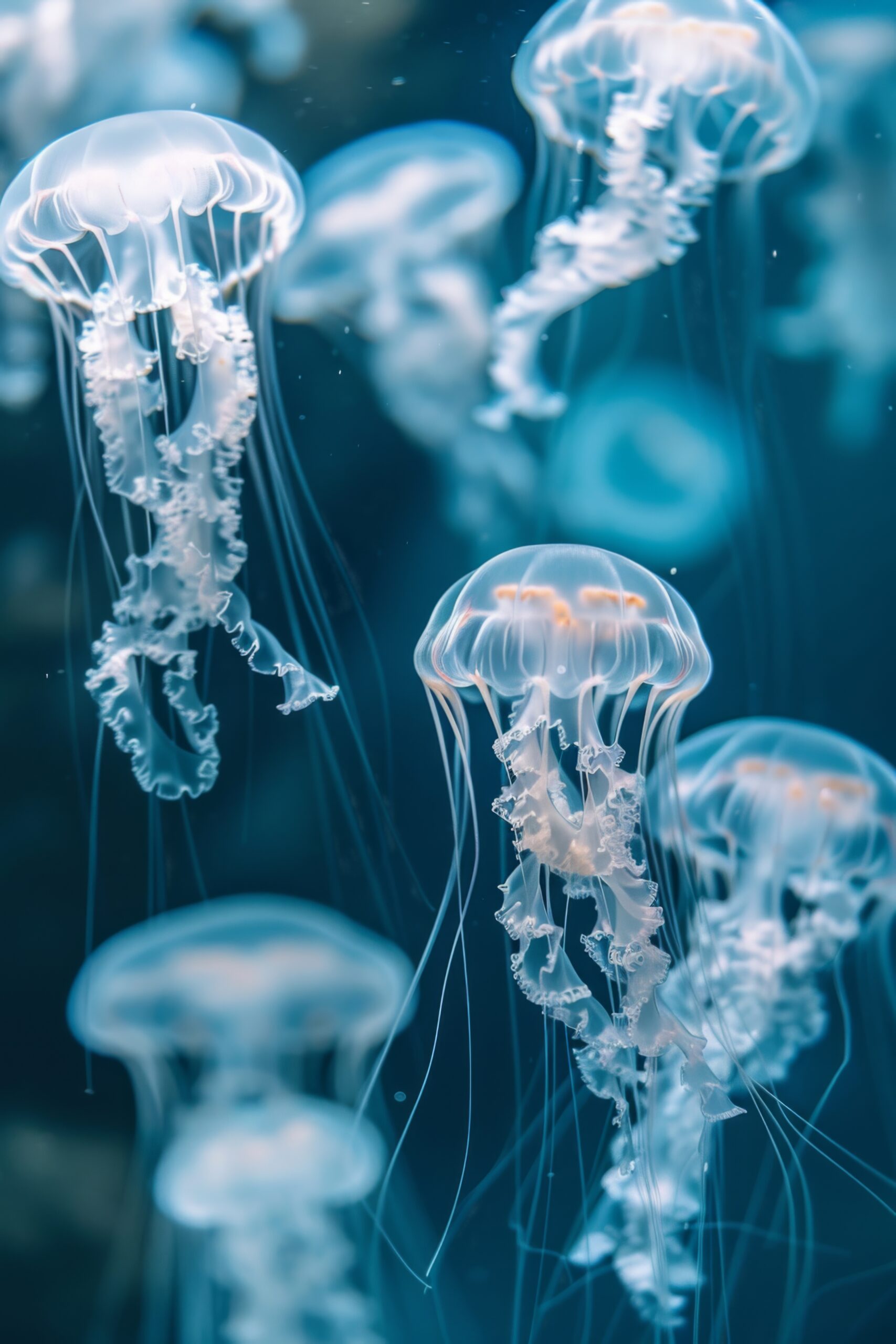 Das Zusammenspiel von Licht und Transparenz erzeugt eine ruhige, fast hypnotische Wirkung. Die Qualle scheint schwerelos zu schweben, die weichen Linien führen den Blick in die Tiefe des Meeres. Das Bild fängt eine fragile Schönheit voller Bewegung ein.