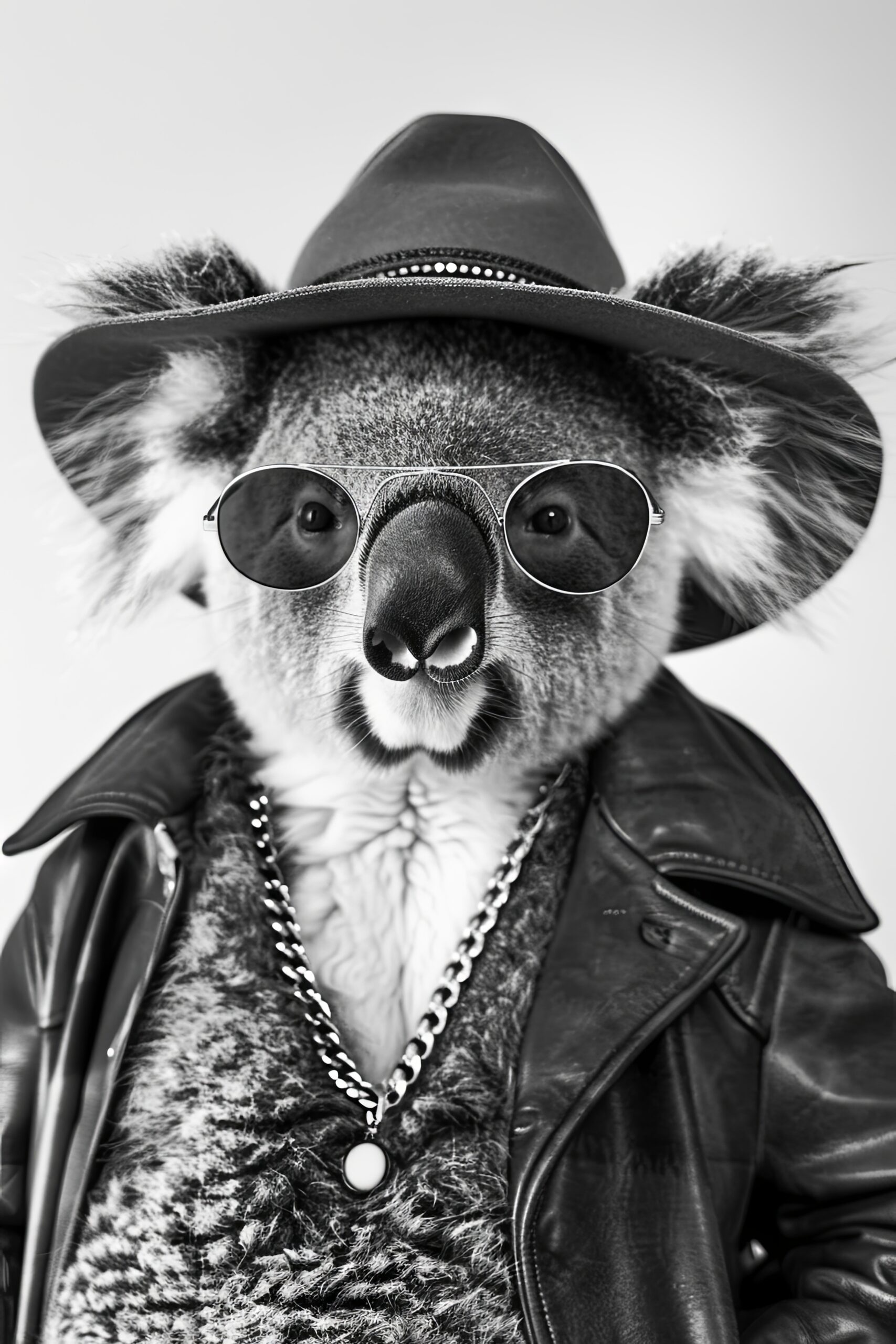 Du siehst gerade: Koala mit Hut und Brille Leinwandbild ab 20,99