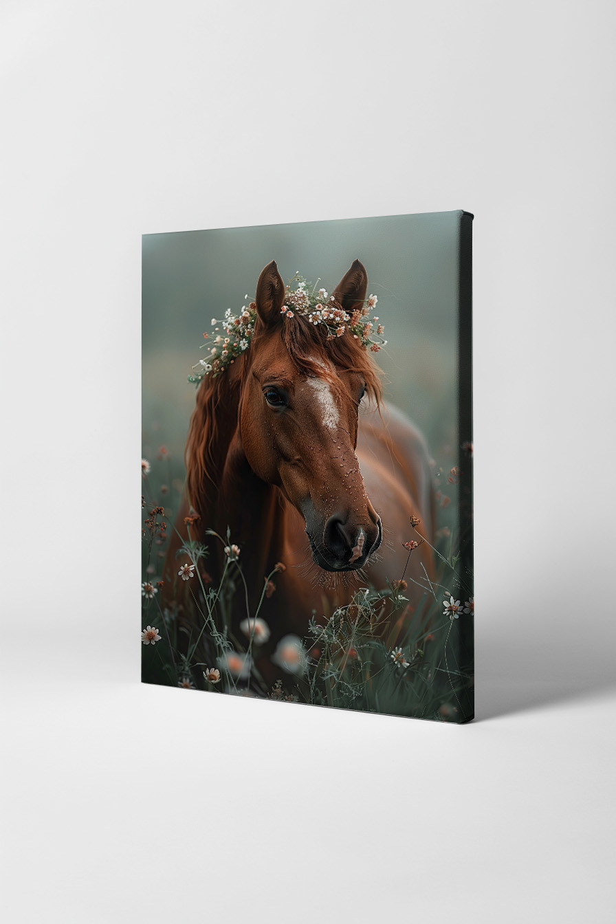 Pferd mit Blumenkranz Leinwandbild Pferd mit Blumenkranz Leinwandbild