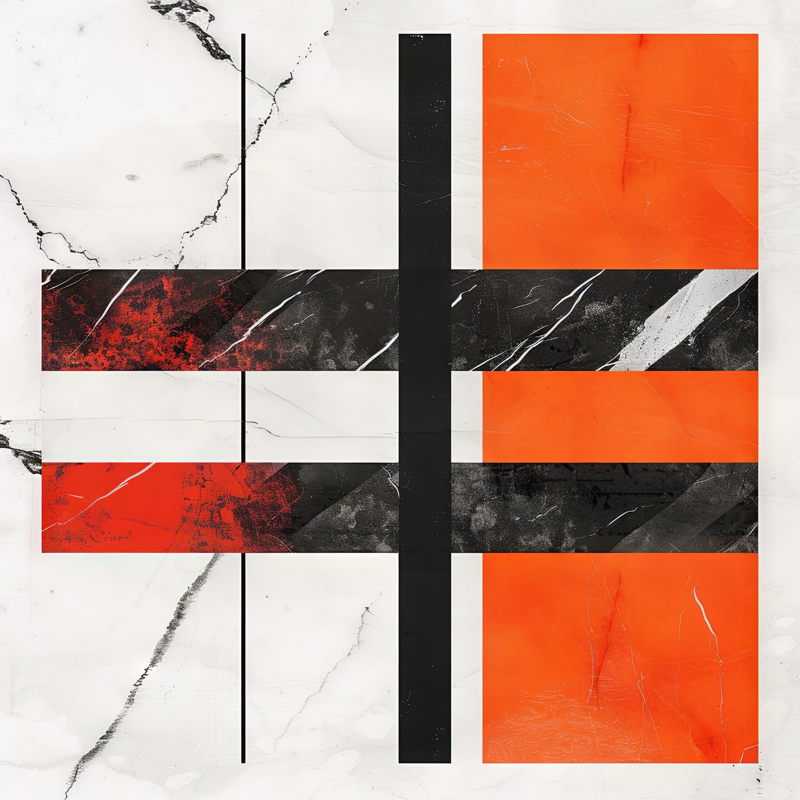 Das Zusammenspiel von kräftigen Farbflächen und klaren Linien vermittelt eine ruhige, geordnete Wirkung, bei der die haptischen Details der Oberfläche sichtbare Spuren hinterlassen.