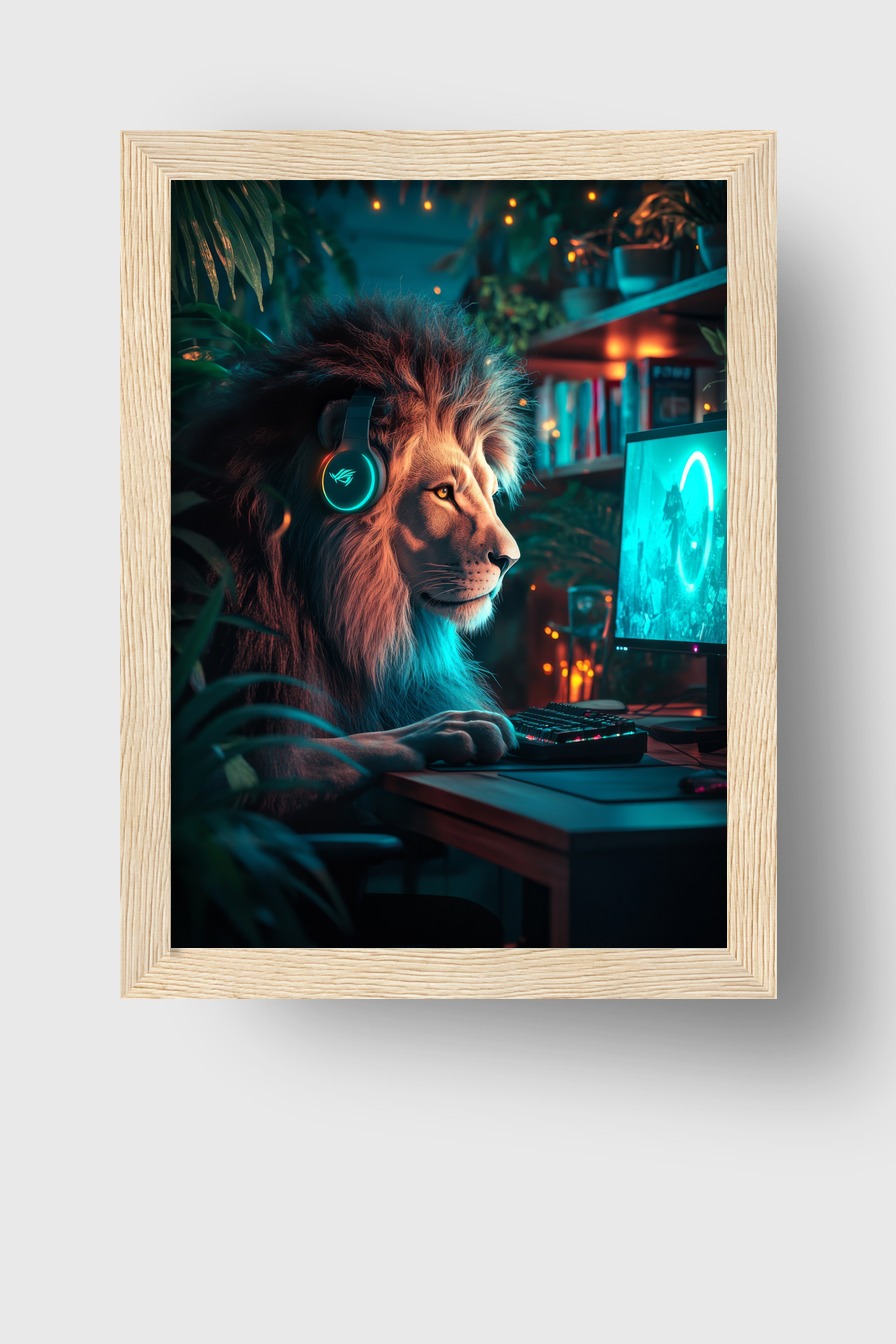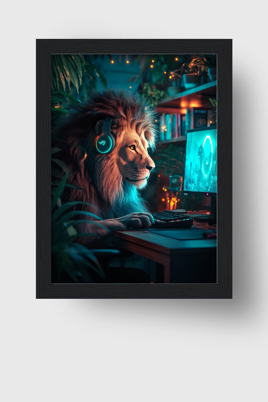 Löwe am PC Gerahmt Löwe am PC Gerahmt