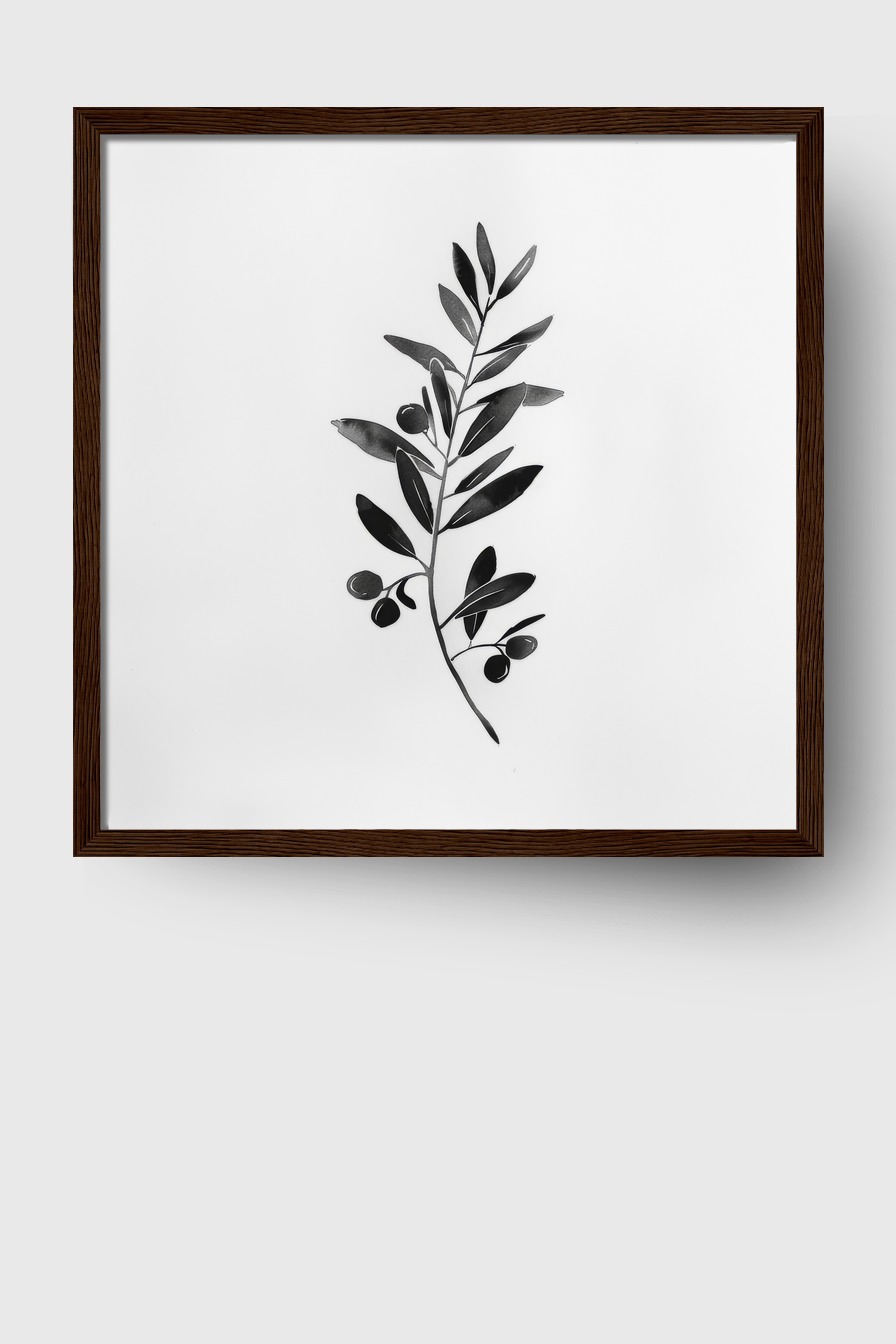 Oliven Zweig Minimalistisch Gerahmt Oliven Zweig Minimalistisch Gerahmt