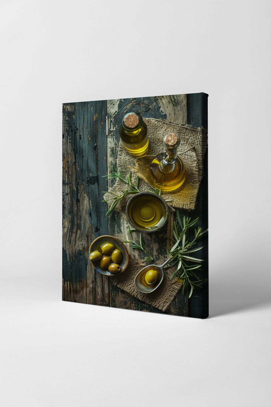 Olivenöl mit Oliven Leinwandbild Olivenöl mit Oliven Leinwandbild