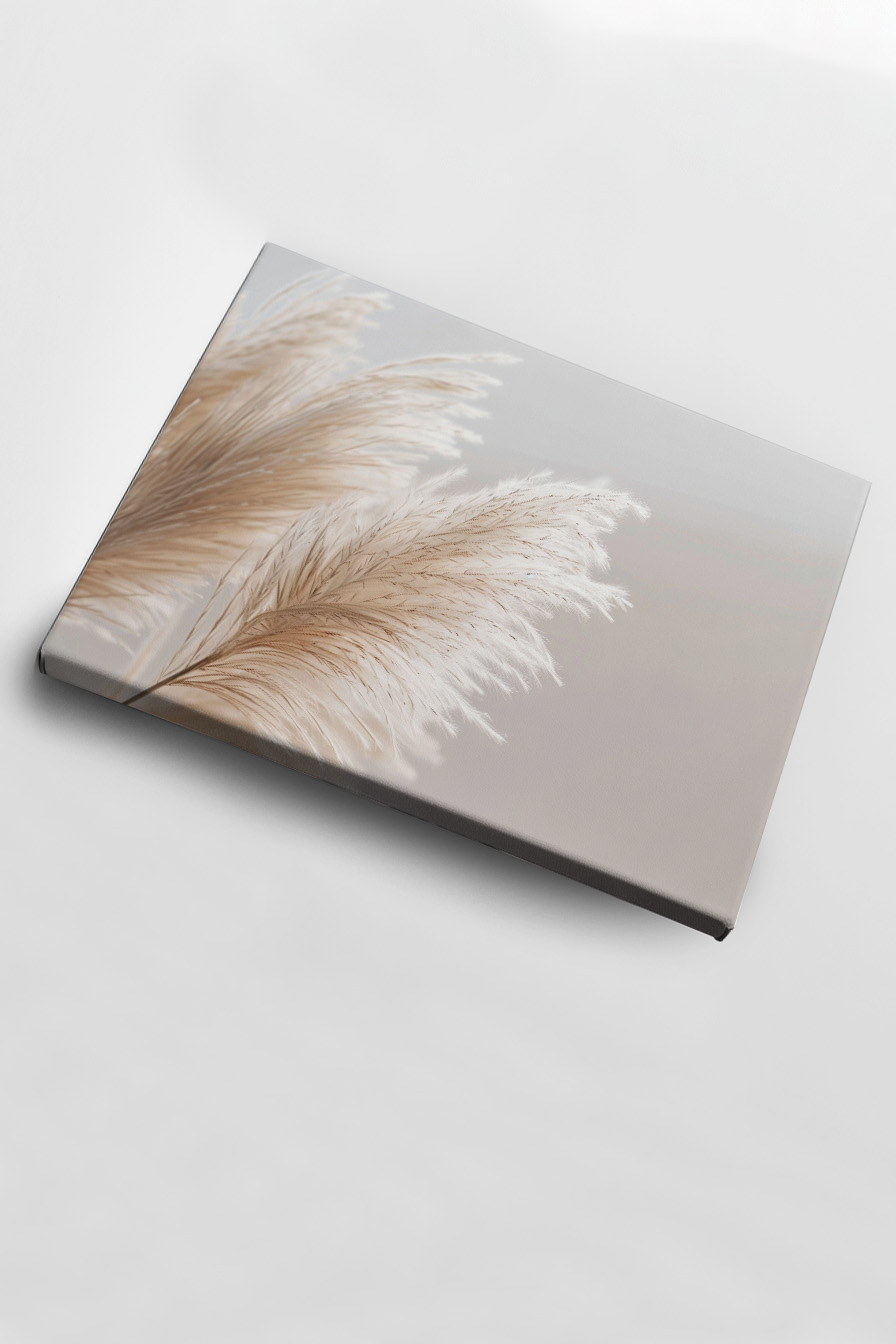 Das Pampasgras breitet sich elegant aus und schafft eine beruhigende Gesamtwirkung. Die sanfte Farbpalette und die feine Textur vermitteln ein Gefühl von Leichtigkeit und Naturverbundenheit. Das Motiv zieht durch seine ruhige Präsenz den Blick an und lädt zum Verweilen ein.