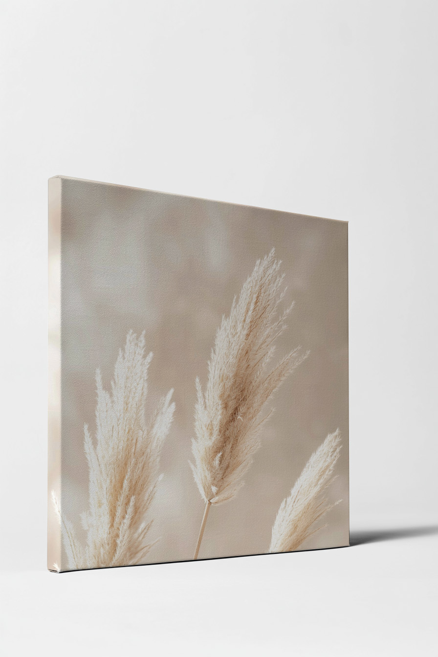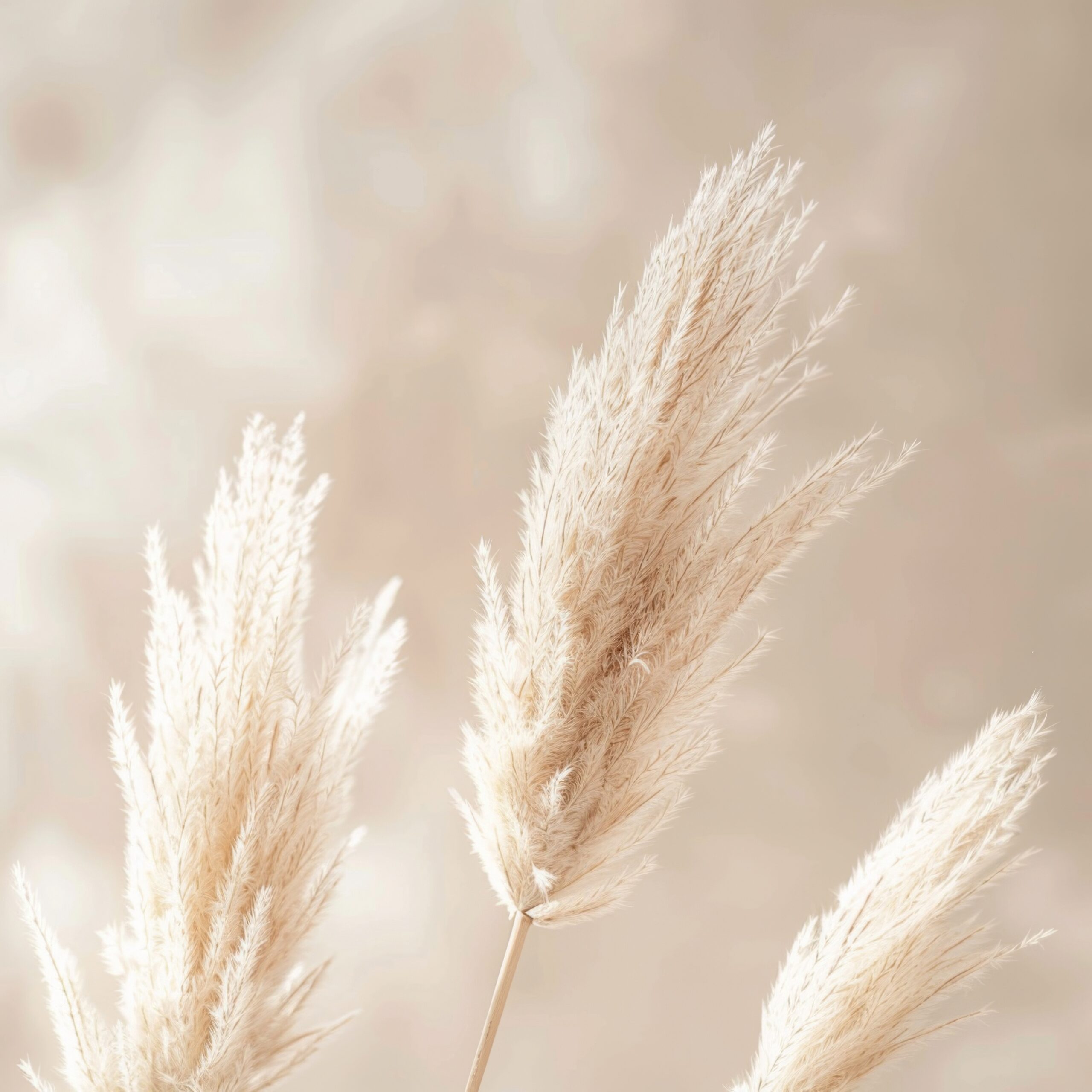 Das Bild fängt die leichten Bewegungen und die luftige Textur des Pampasgrases ein, die in dezenten Beige- und Cremetönen fließend ineinander übergehen und eine sanfte Stimmung erzeugen.