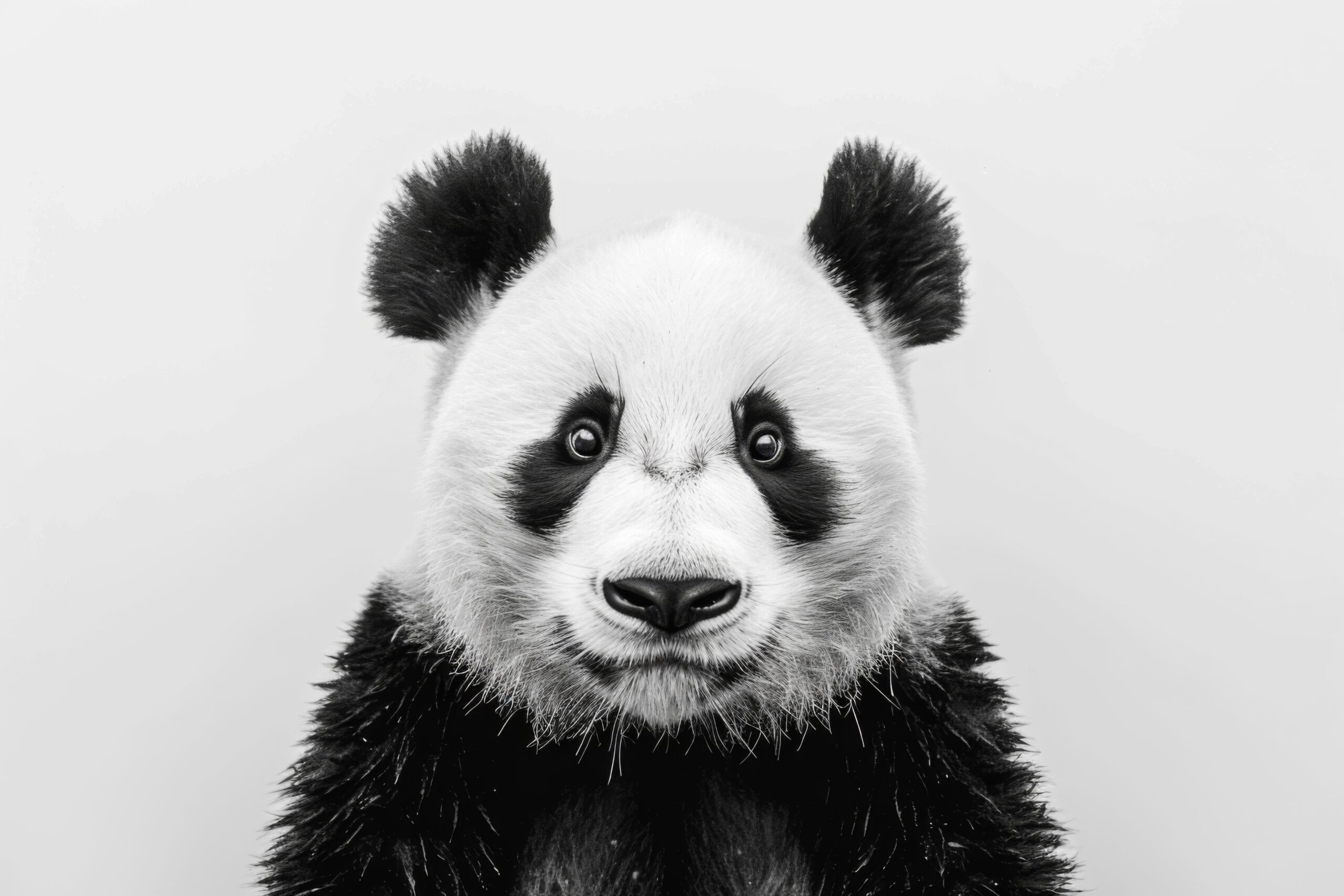 Ein Panda steht im Mittelpunkt, deutlich sichtbar mit symmetrischem Gesichtsausdruck.