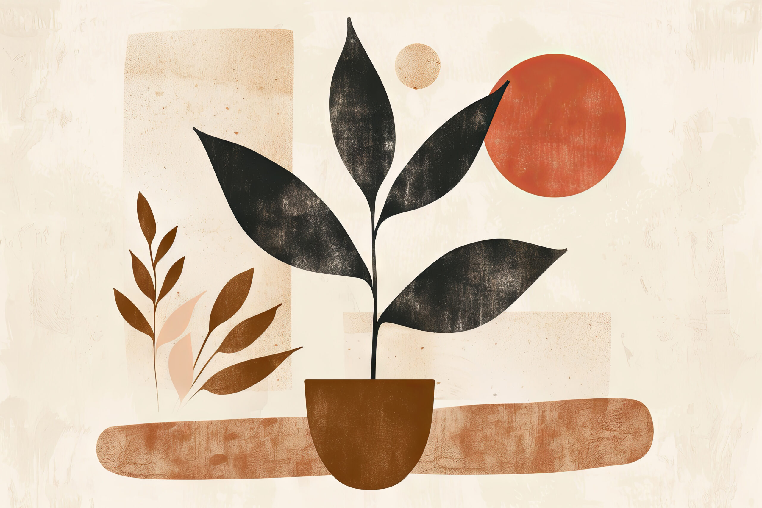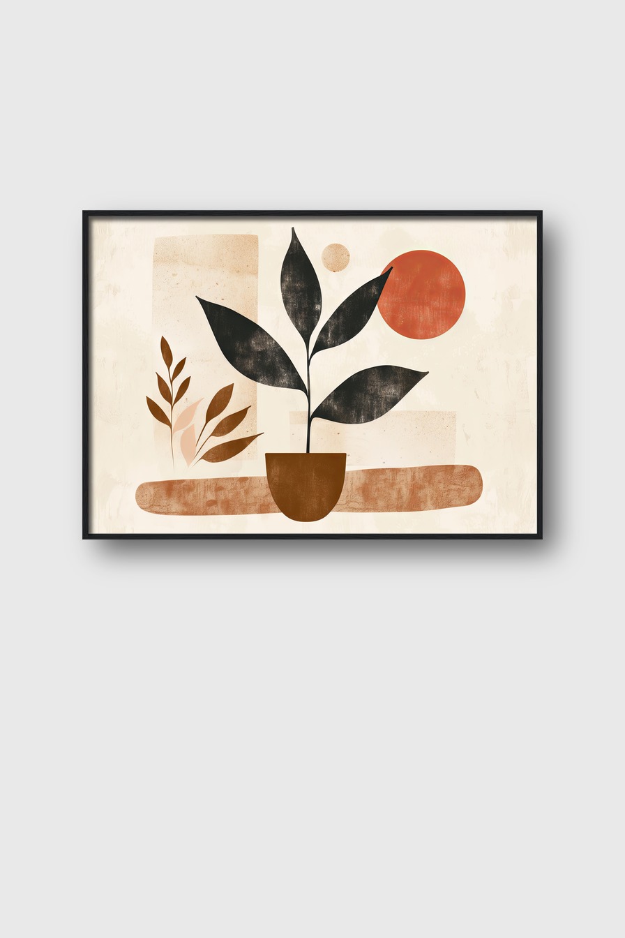 An der Wand entfaltet das Motiv eine dezent elegante Wirkung. Die Formen und Farben ergänzen sich so, dass Ruhe und Natürlichkeit im Raum einziehen, ideal für schlichte moderne Einrichtungen.
