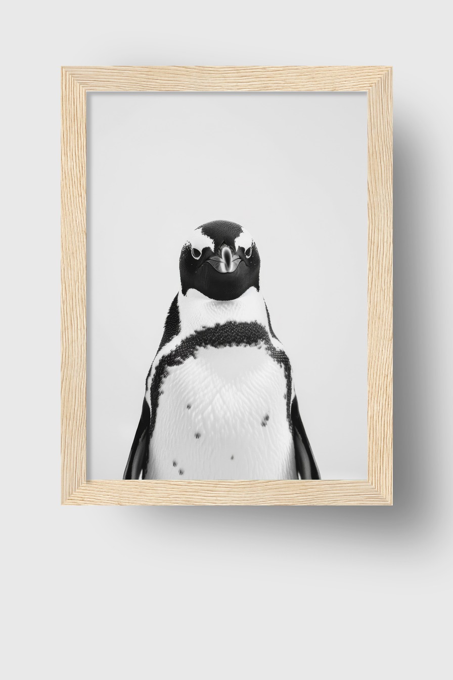 Das Motiv bringt eine ruhige, natürliche Ausstrahlung in den Raum und zieht mit seiner klaren Linienführung die Aufmerksamkeit auf sich. Die minimalistische Schönheit des Pinguins passt gut in verschiedene Einrichtungsstile und schafft eine subtile Lebendigkeit.