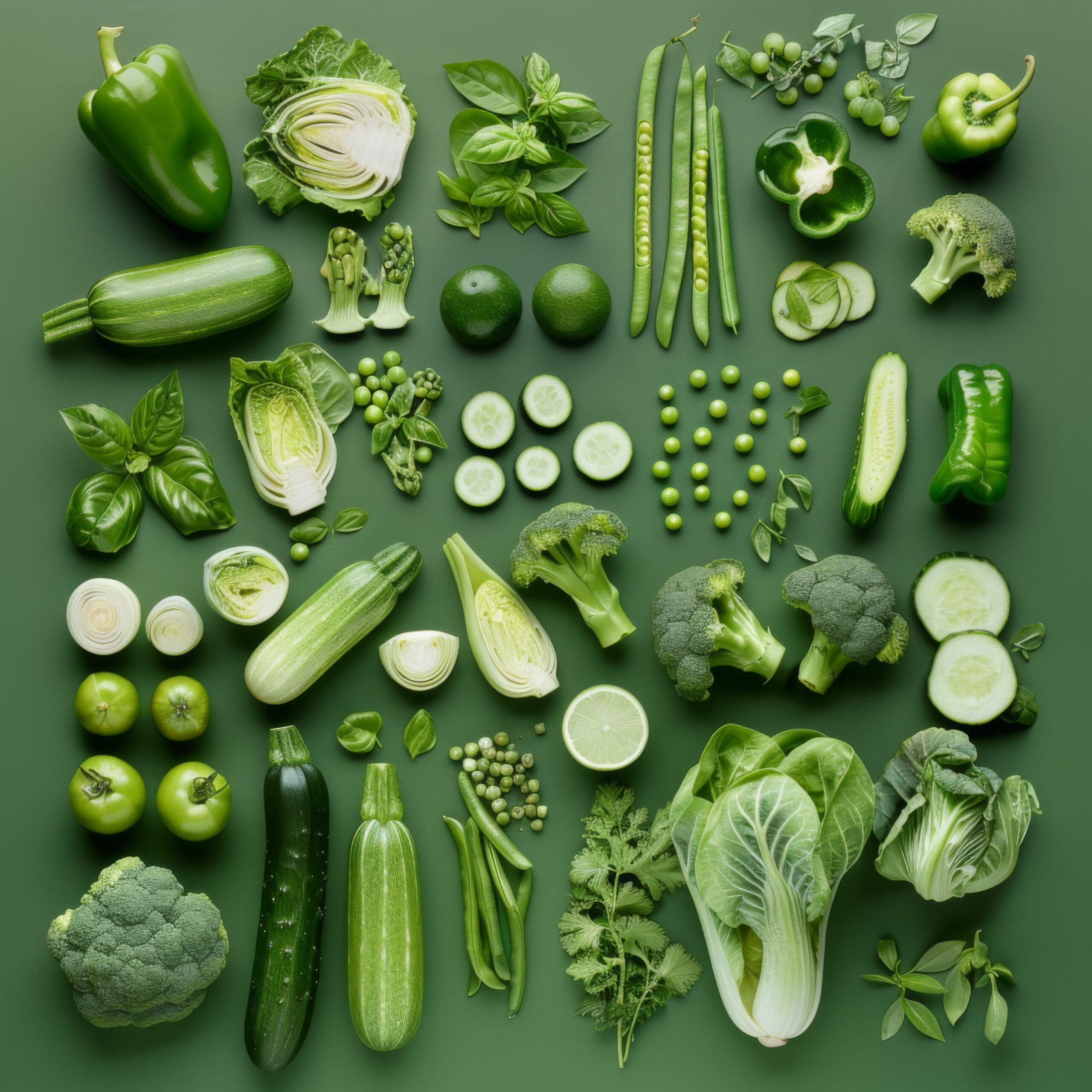 Die grünen Stangenbohnen zeigen ihre klaren Linien und scharfen Kanten, ein reduziertes Spiel mit Form und Farbe, das die ganze Sammlung von Gemüse belebt.